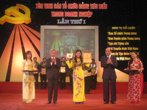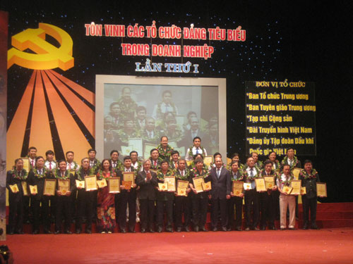 Sáng 28/8, tại Nhà hát Lớn Hà Nội, Ban Tổ chức Trung ương, Ban Tuyên giáo Trung ương, phối hợp Tạp chí Cộng sản, Đảng bộ Tập đoàn Dầu khí quốc gia, Đài Truyền hình Việt Nam tổ chức lễ Tôn vinh các tổ chức Đảng tiêu biểu trong doanh nghiệp lần thứ I.
