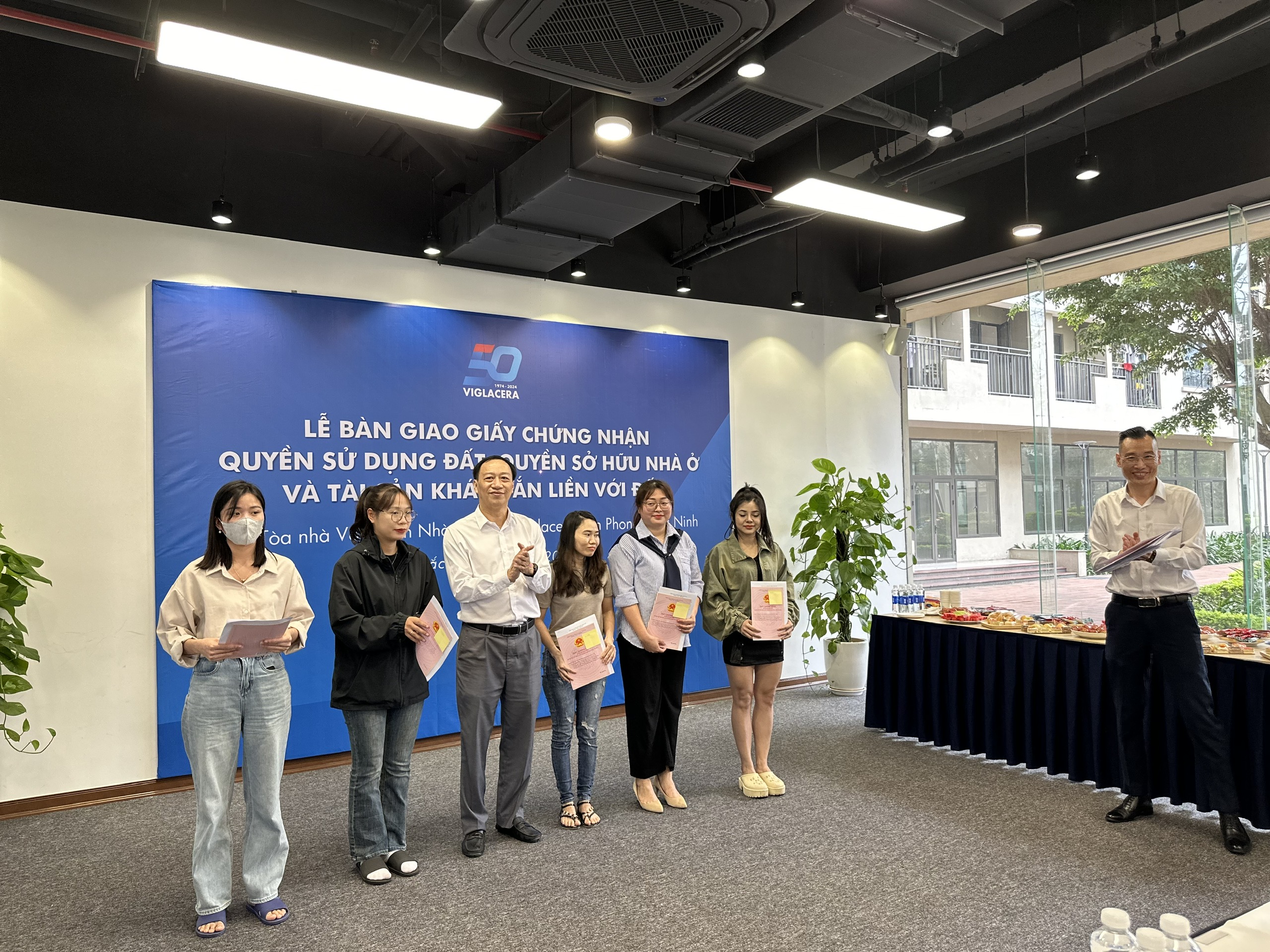 Buổi Lễ bàn giao Giấy chứng nhận Quyền sử dụng đất có sự tham dự của đại diện chủ đầu tư Viglacera và 26 khách hàng đã tin tưởng chọn căn hộ tại Dự án làm nơi an cư. Để chuẩn bị cho sự kiện này, ngay từ những tháng cuối năm 2023, cư dân tại toà V8 đã hoàn thành hoàn thành các nghĩa vụ tài chính và hồ sơ pháp lý cá nhân theo hướng dẫn. Với tinh thần trách nhiệm cao nhất, chủ đầu tư Viglacera đã luôn nỗ lực làm việc với các cơ quan thẩm quyền để tiến hành cấp giấy chứng nhận quyền sử dụng đất sớm nhất cho khách hàng thuộc Dự án.