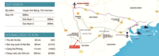 Khu công nghiệp Đồng Văn 4 giai đoạn 1 có tổng diện tích 300 ha tại tỉnh Hà Nam, tỉnh được đánh giá có môi trường đầu tư thuận lợi với nhiều cơ chế chính sách ưu đãi, hỗ trợ cho các doanh nghiệp công nghệ cao. Bên cạnh đó, với vị trí thuận lợi, dễ dàng kết nối với đường QL 1 đi Hà Nội và Cao tốc Hà Nội – Hải Phòng ra cảng Hải Phòng, thời gian di chuyển từ Khu công nghiệp tới Hà Nội chỉ 45 phút, tới Sân bay Nội Bài là 1h15’, tới Cảng Hải Phòng là 1h45’, rất thuận tiện cho các doanh nghiệp xuất nhập khẩu hàng hóa cả đường hàng không và đường biển.