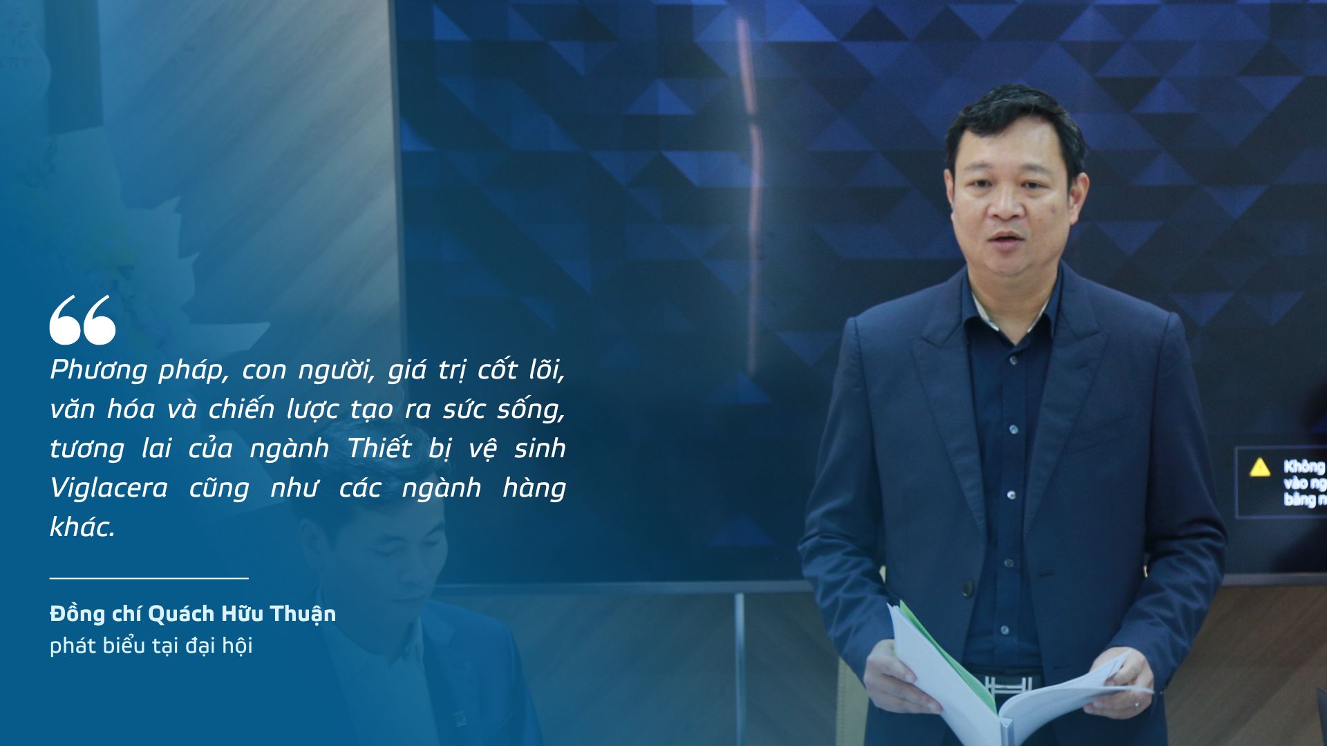 Phát biểu tại đại hội, đồng chí Quách Hữu Thuận đánh giá Chi bộ Ban Thương mại một trong những chi bộ thành lập tiên phong sau khi tái cấu, sáp nhập công tác kinh doanh của ngành hàng Sứ vệ sinh & Sen vòi nói riêng các đơn vị thành viên của Tổng công ty Viglacera nói chung với đội ngũ đảng viên cốt cán.