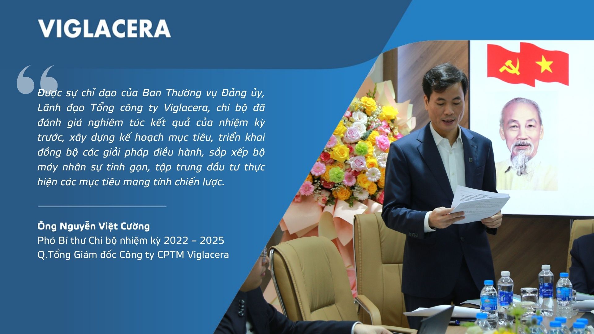 Tại đại hội, đồng chí Nguyễn Việt Cường, Phó thư Chi bộ nhiệm kỳ 2022 – 2025, Q.Tổng Giám đốc Công ty Cổ phần Thương mại Viglacera đã phần trình bày Báo cáo chính trị, o cáo kiểm điểm của Chi ủy nhiệm kỳ 2022 – 2025.