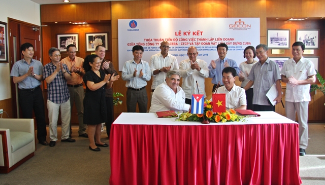 Để thể hiện quyết tâm cao của Viglacera và Geicon cho ra đời liên doanh trong tháng 10/2016, ngay trong buổi chiều 14/6/2016, tại trụ sở Tổng công ty Viglacera đã diễn ra Lễ ký kết thỏa thuận tiến độ thành lập liên doanh giữa Viglacera và Geicon dưới sự chứng kiến của Bộ Xây dựng Cuba và các quan chức cấp cao của hai bên.