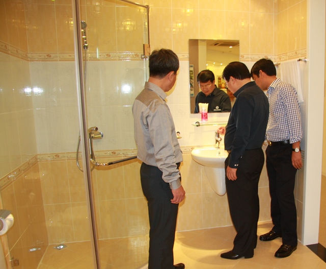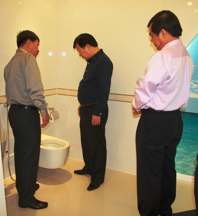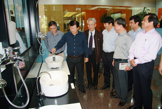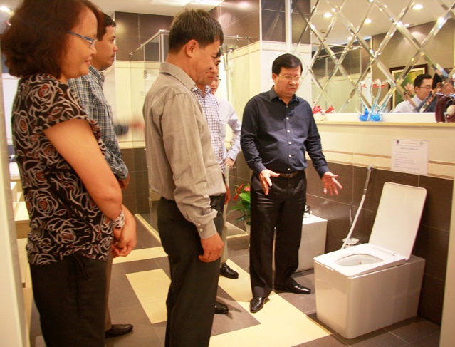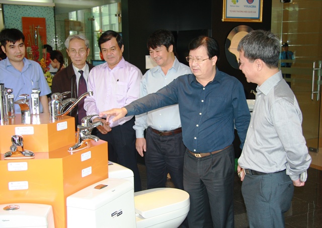 Bộ Trưởng Bộ Xây dựng Trịnh Đình Dũng tham quan gian trưng bày sản phẩm của TCT Viglacera