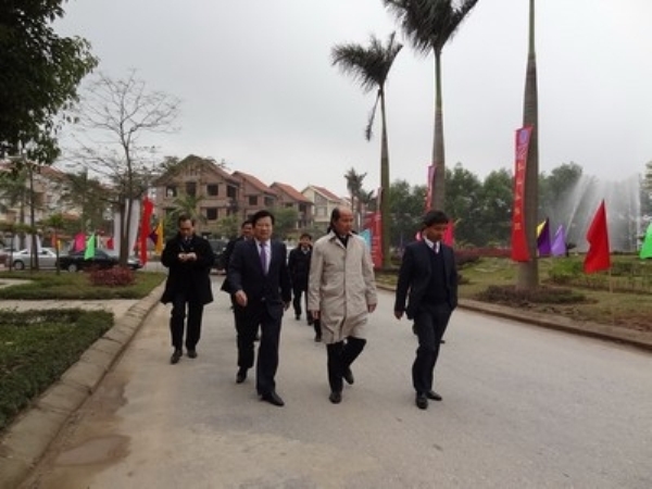 Bộ trưởng Trịnh Đình Dũng, Thứ trưởng Nguyễn Trần Nam, Lãnh đạo Tập đoàn HUD thăm Khu đô thị mới Đặng Xá I đang hoàn thiện.