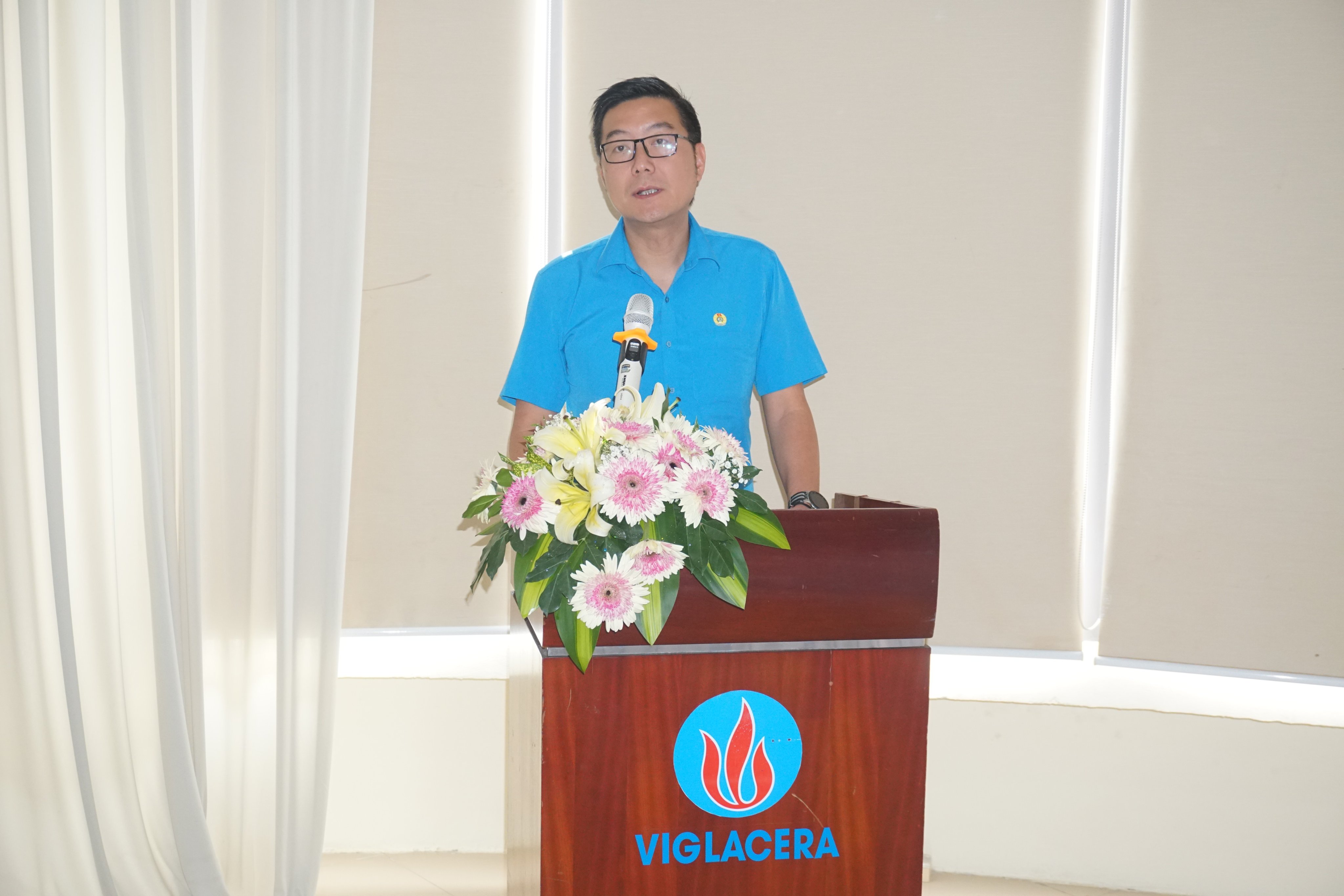 Đồng chí Nguyễn Quý Tuấn, Chủ tịch Công đoàn TCT Viglacera phát biểu tại Hội nghị Người Lao động Công ty Đầu tư Hạ tầng và Đô thị Viglacera.