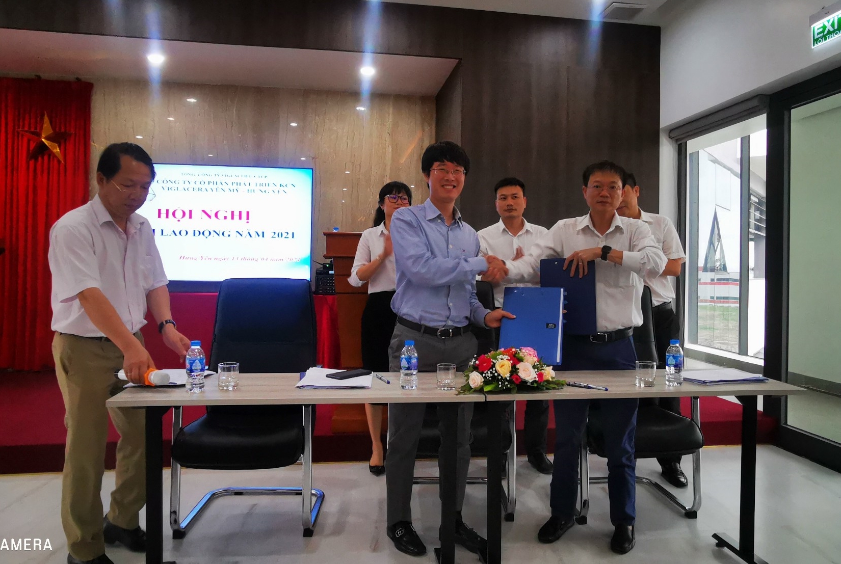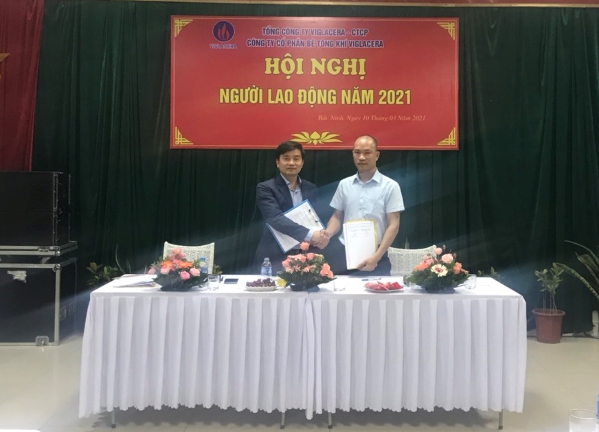 Ký Thỏa ước LĐTT và cam kết phối hợp 2021 giữa NSDLĐ và đại diện NLĐ tại Hội nghị Người lao động Công ty CP Bê tông khí Viglacera