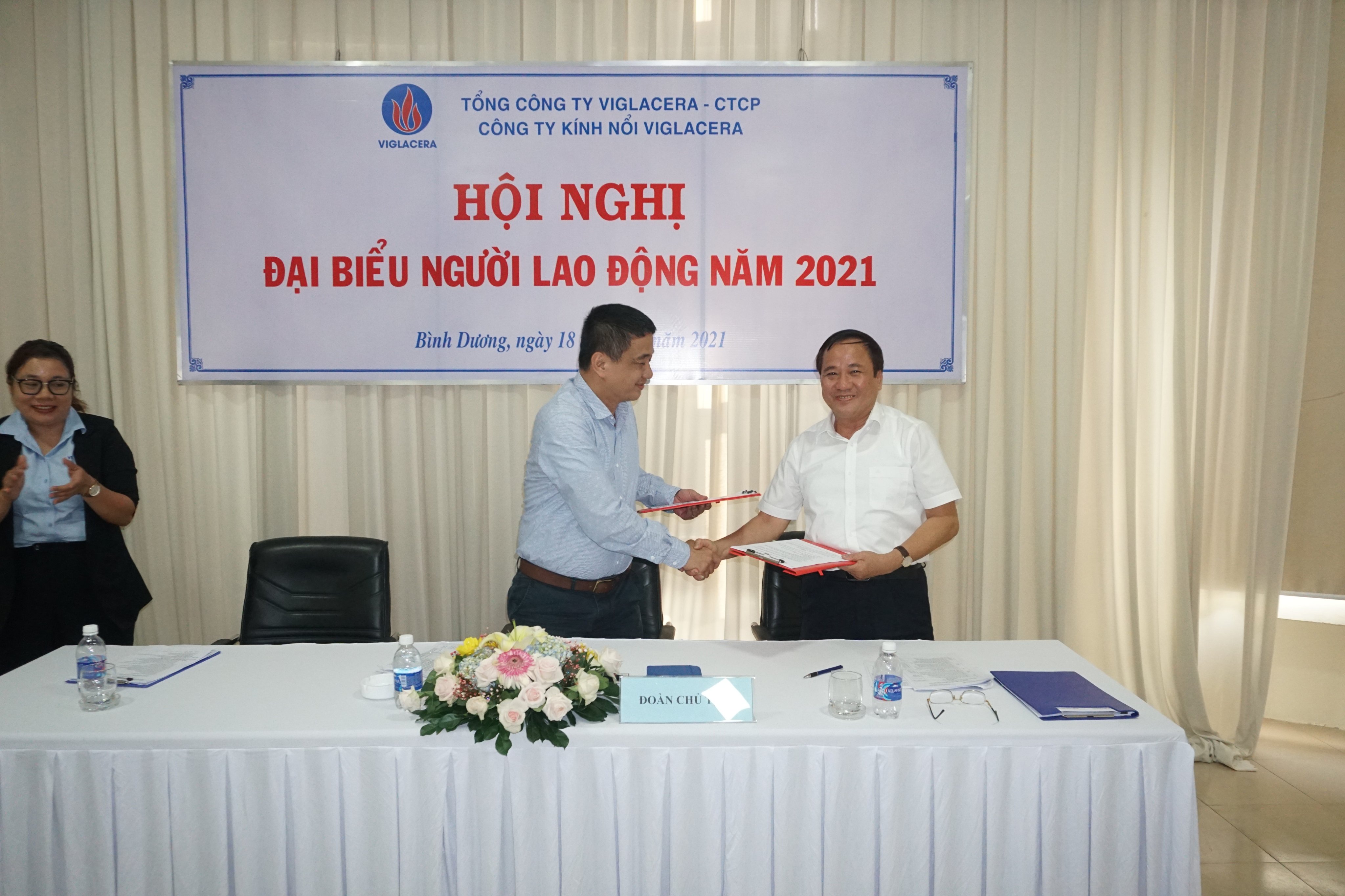Ký cam kết phối hợp 2021 giữa NSDLĐ và đại diện NLĐ tại Hội nghị Người lao động Công ty Kính nổi Viglacera