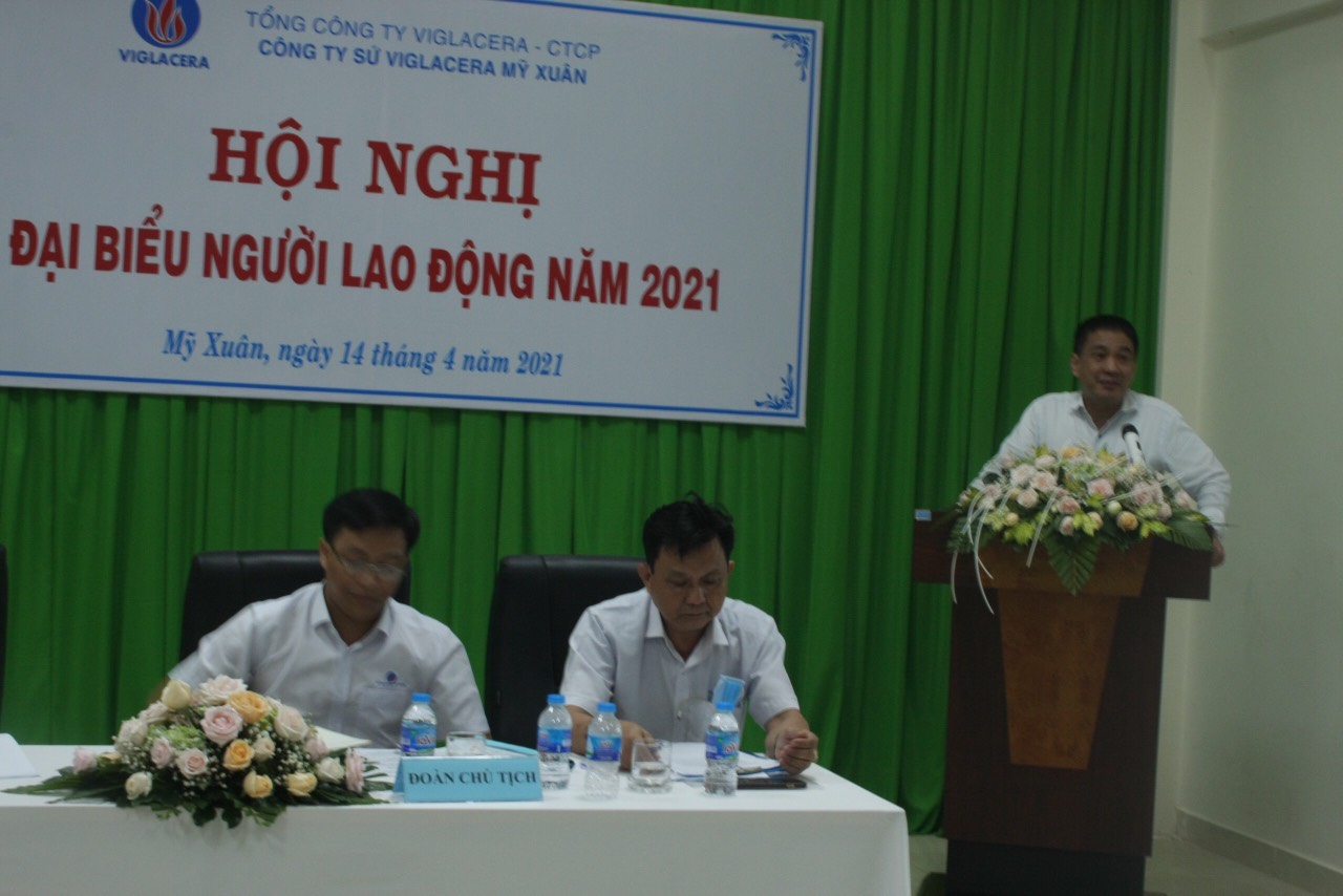 Đồng chí Nguyễn Minh Khoa, Phó TGĐ TCT, Giám đốc Ban Sứ VS Viglacera phát biểu chỉ đạo tại Hội nghị Người Lao động Công ty Sứ Viglacera Bình Dương.