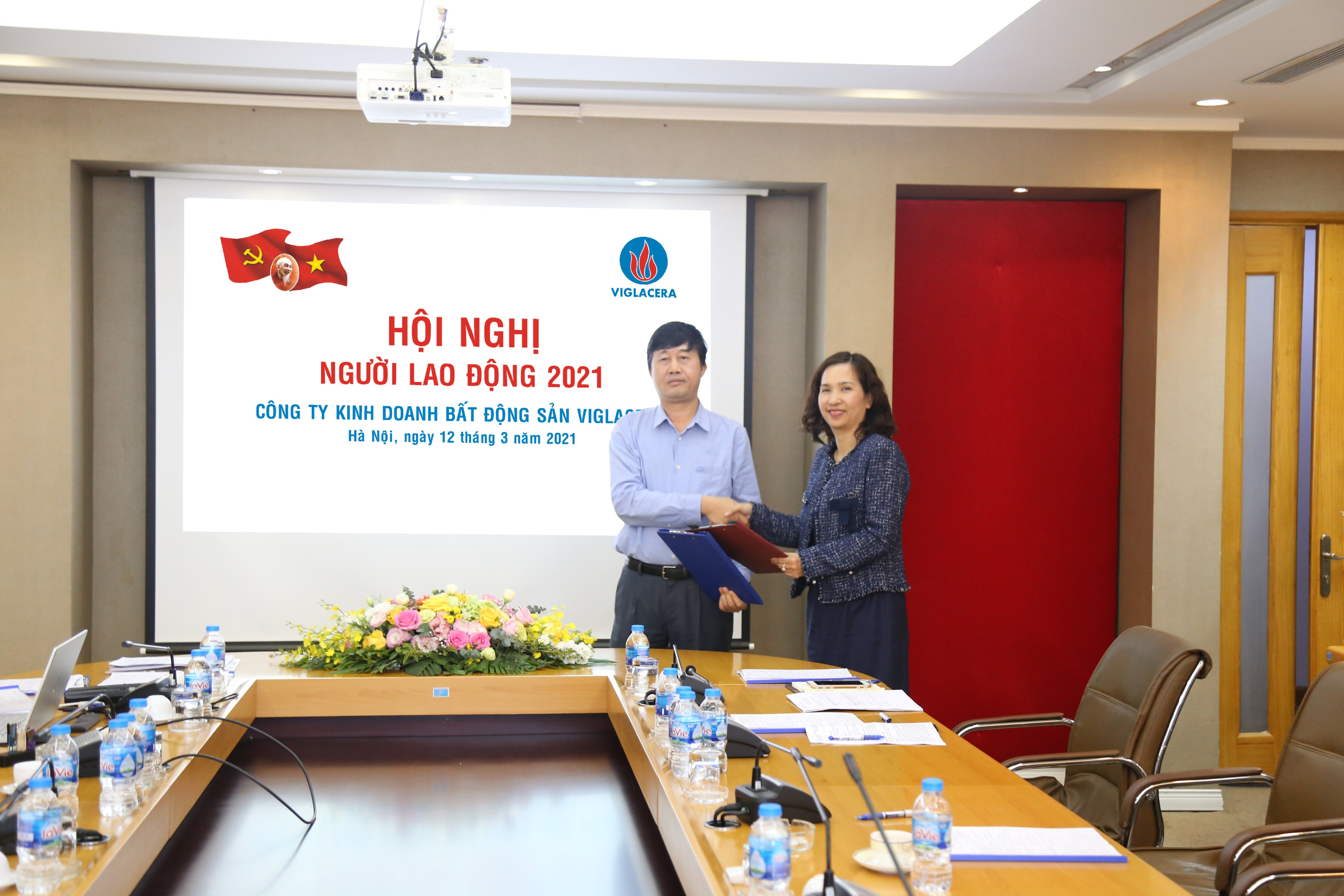 Ký cam kết phối hợp 2021 giữa NSDLĐ và đại diện NLĐ tại Hội nghị Người lao động Công ty KD BĐS Viglacera