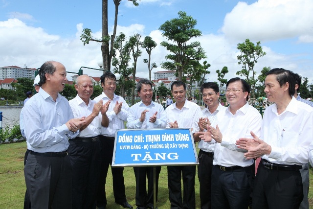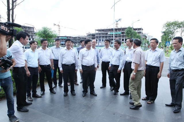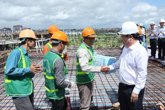 Bộ trưởng Trịnh Đình Dũng và chủ đầu tư – Tổng công ty Viglacera – CTCP đã đến từng hạng mục công trình thăm hỏi anh chị em cán bộ kỹ thuật, công nhân đang thi công trên công trường và kiểm tra chất lượng toàn công trình Khu NƠXH giai đoạn 3 Đặng Xá.