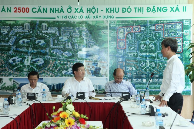 Tổng giám đốc Tổng công ty Viglacera – CTCP – ông Nguyễn Anh Tuấn báo cáo về dự án NƠXH tại KĐT Đặng Xá và chiến lược phát triển của Viglacera trong thời gian tới tại buổi làm việc