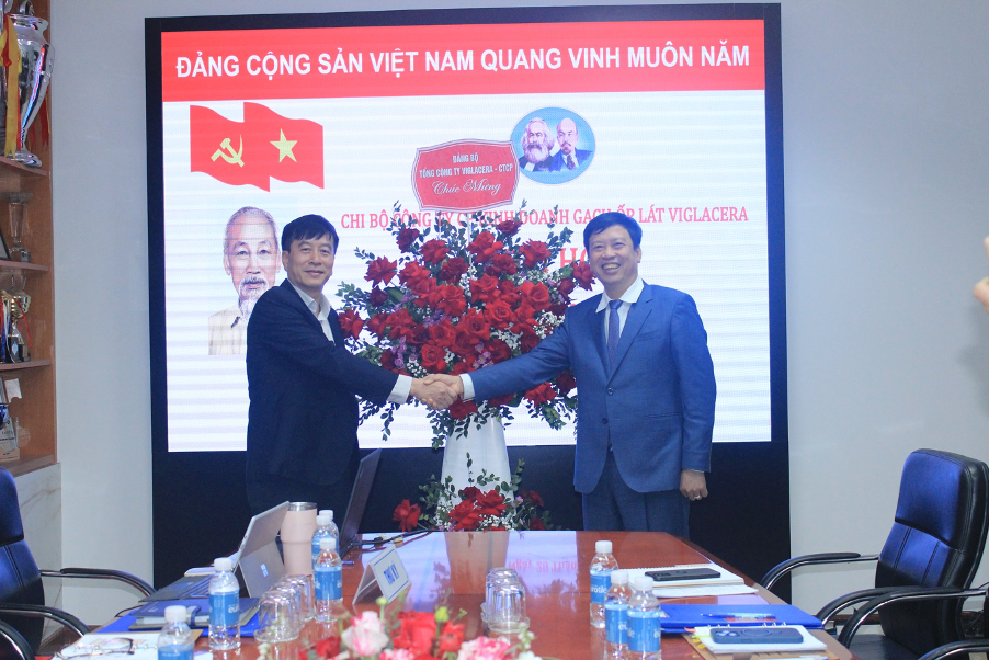 Về phía Công ty có đồng chí Mai Xuân Đức – Tổng Giám đốc Công ty CP Kinh doanh Gạch ốp lát Viglacera cùng toàn thể Đảng viên trong Chi bộ.