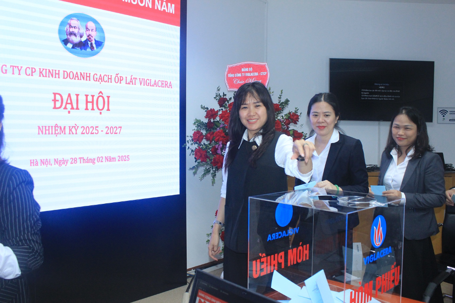 Với tinh thần dân chủ, trách nhiệm, Đại hội đã tiến hành bầu cấp ủy Chi bộ Công ty CP Kinh doanh Gạch ốp lát Viglacera nhiệm kỳ 2025-2027 với 3 đồng chí: