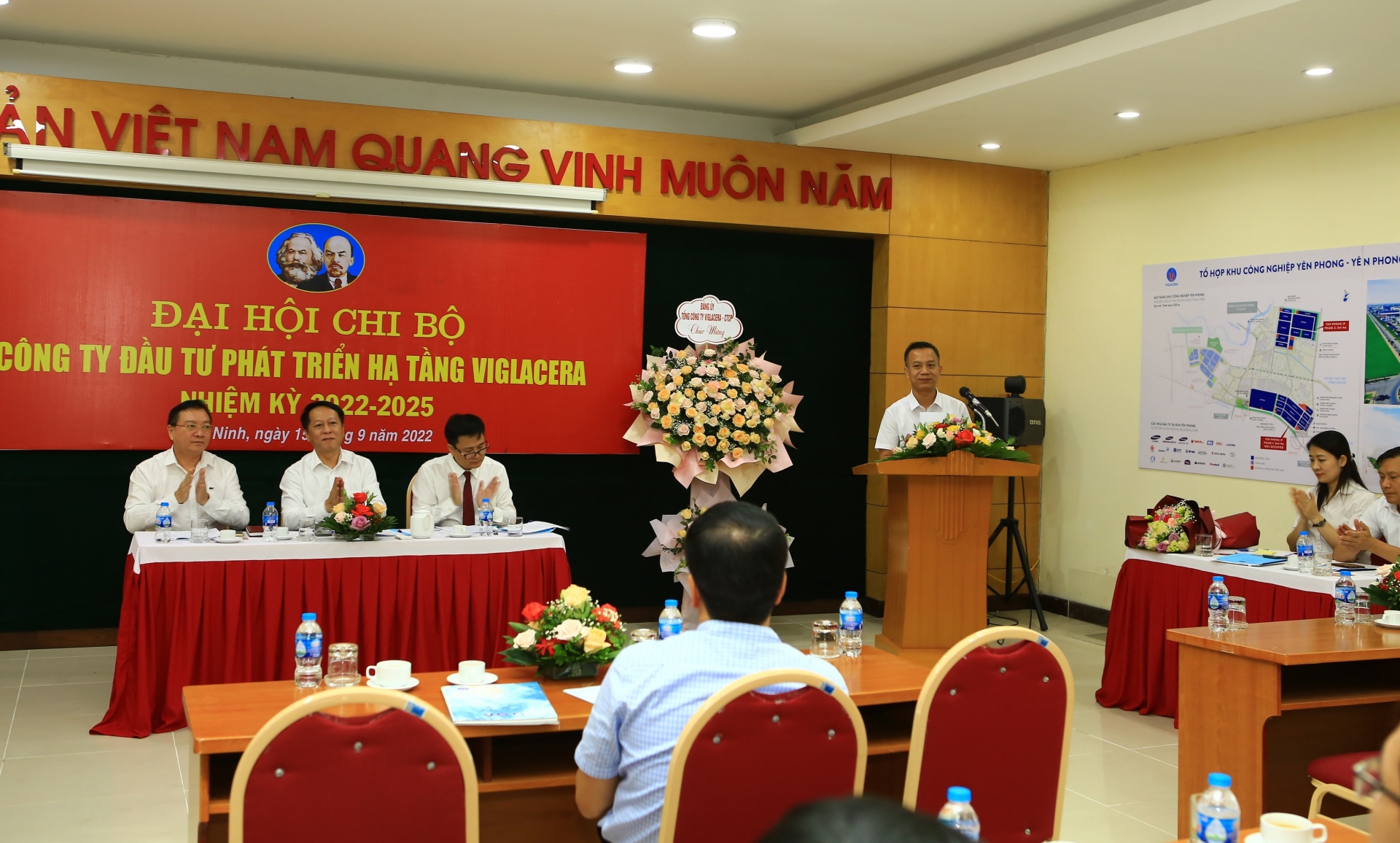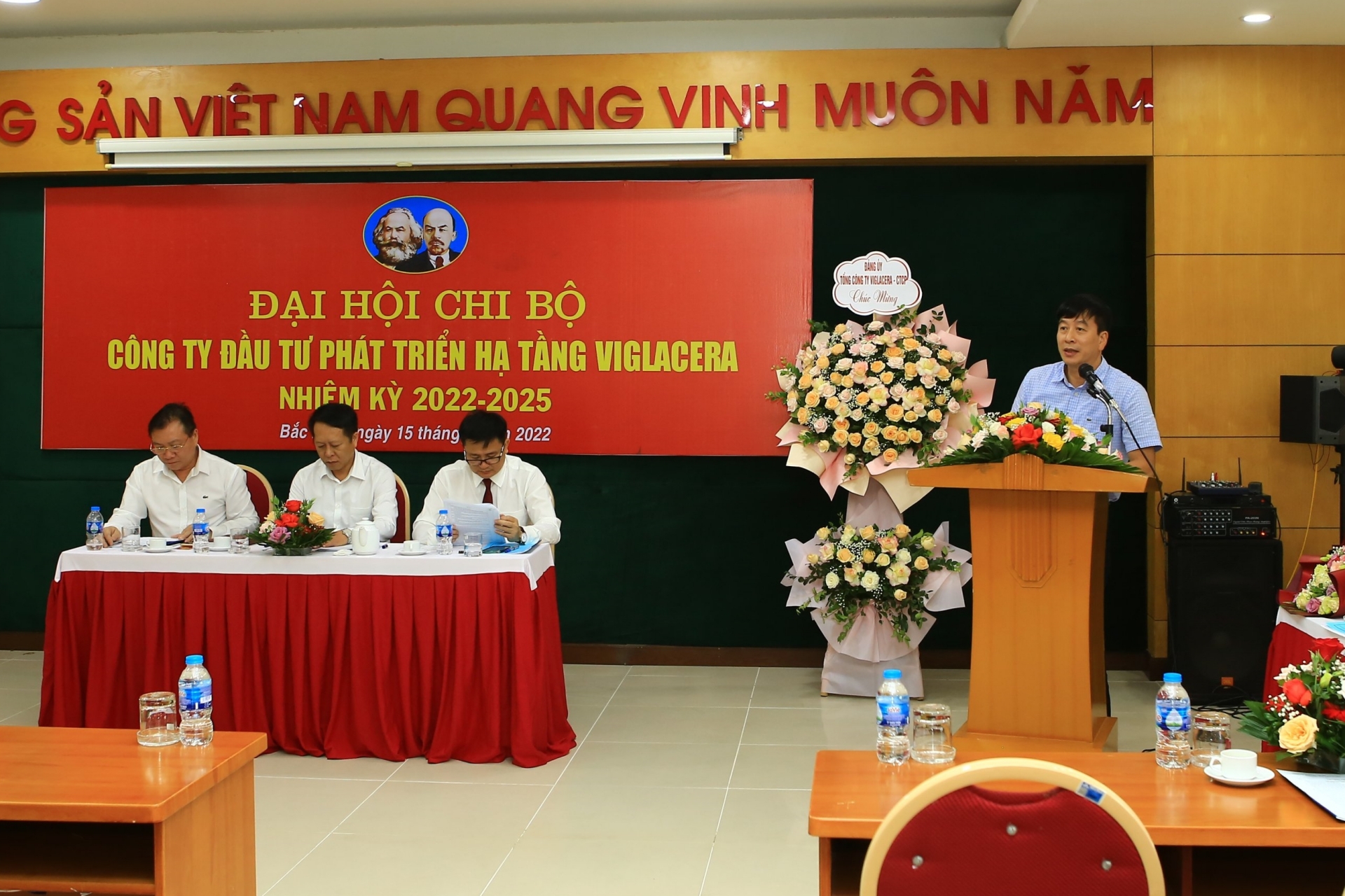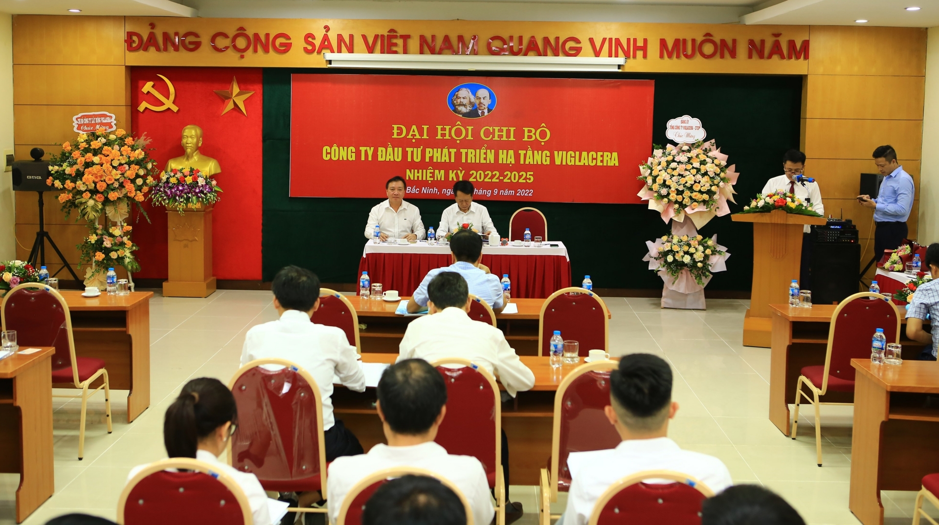 Thực hiện Hướng dẫn số 245-HD/ĐU ngày 27/6/2022 của Ban chấp hành Đảng bộ Tổng công ty Viglacera - CTCP về việc tổ chức Đại hội chi bộ trực thuộc Đảng ủy Tổng công ty Viglacera - CTCP nhiệm kỳ 2022 - 2025, được sự đồng ý của Ban thường vụ Đảng ủy, ngày 15 tháng 9 năm 2022, Chi bộ Công ty Đầu tư phát triển hạ tầng Viglacera đã tổ chức Đại hội chi bộ nhiệm kỳ 2022 - 2025.