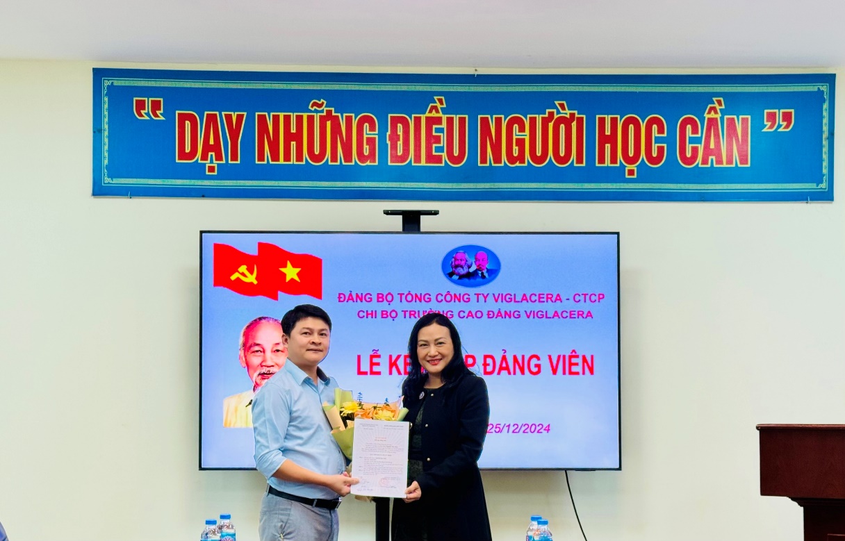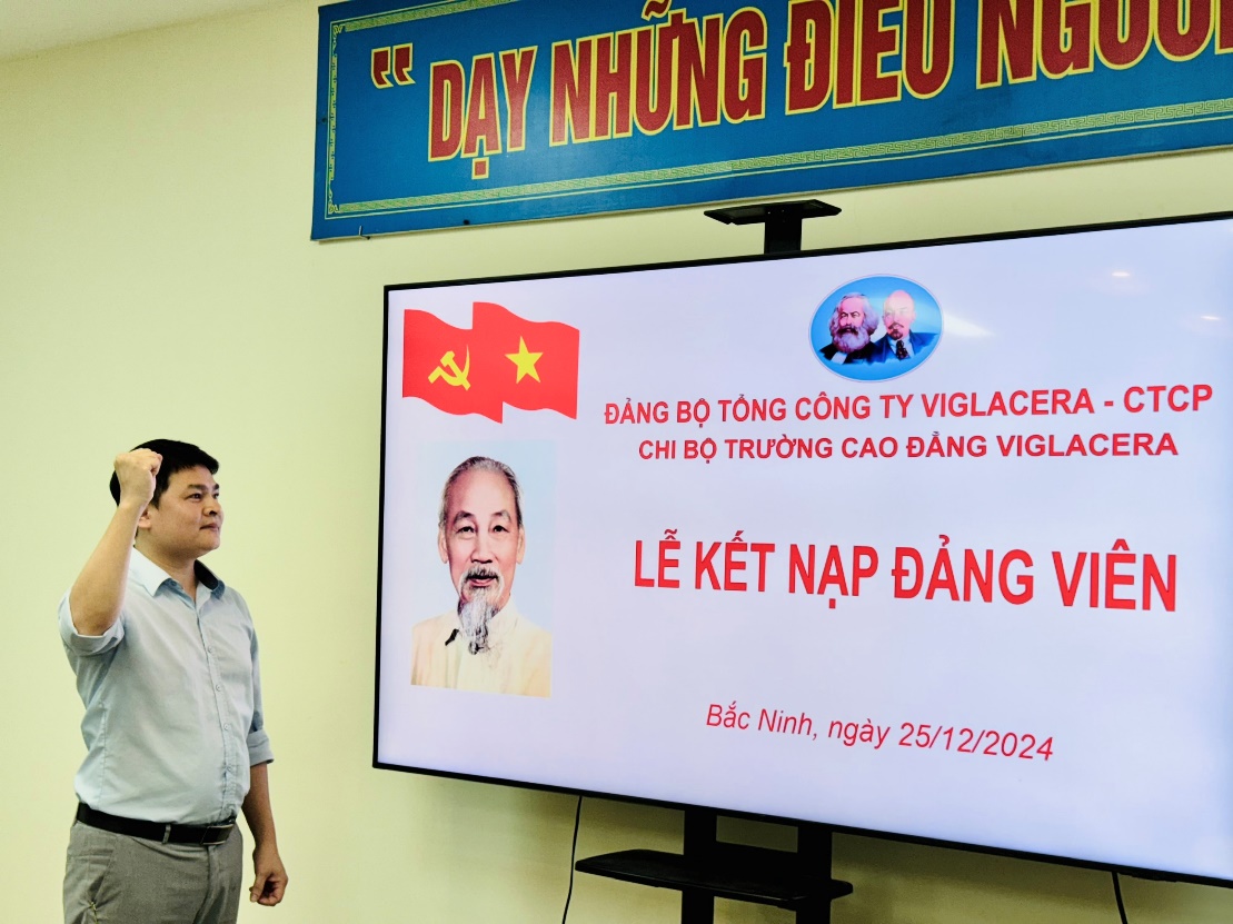 Chiều cùng ngày 25/12/2024, Chi bộ Trường Cao đẳng Viglacera đã long trọng tổ chức Lễ kết nạp đảng viên mới cho đồng chí Nguyễn Văn Toàn.