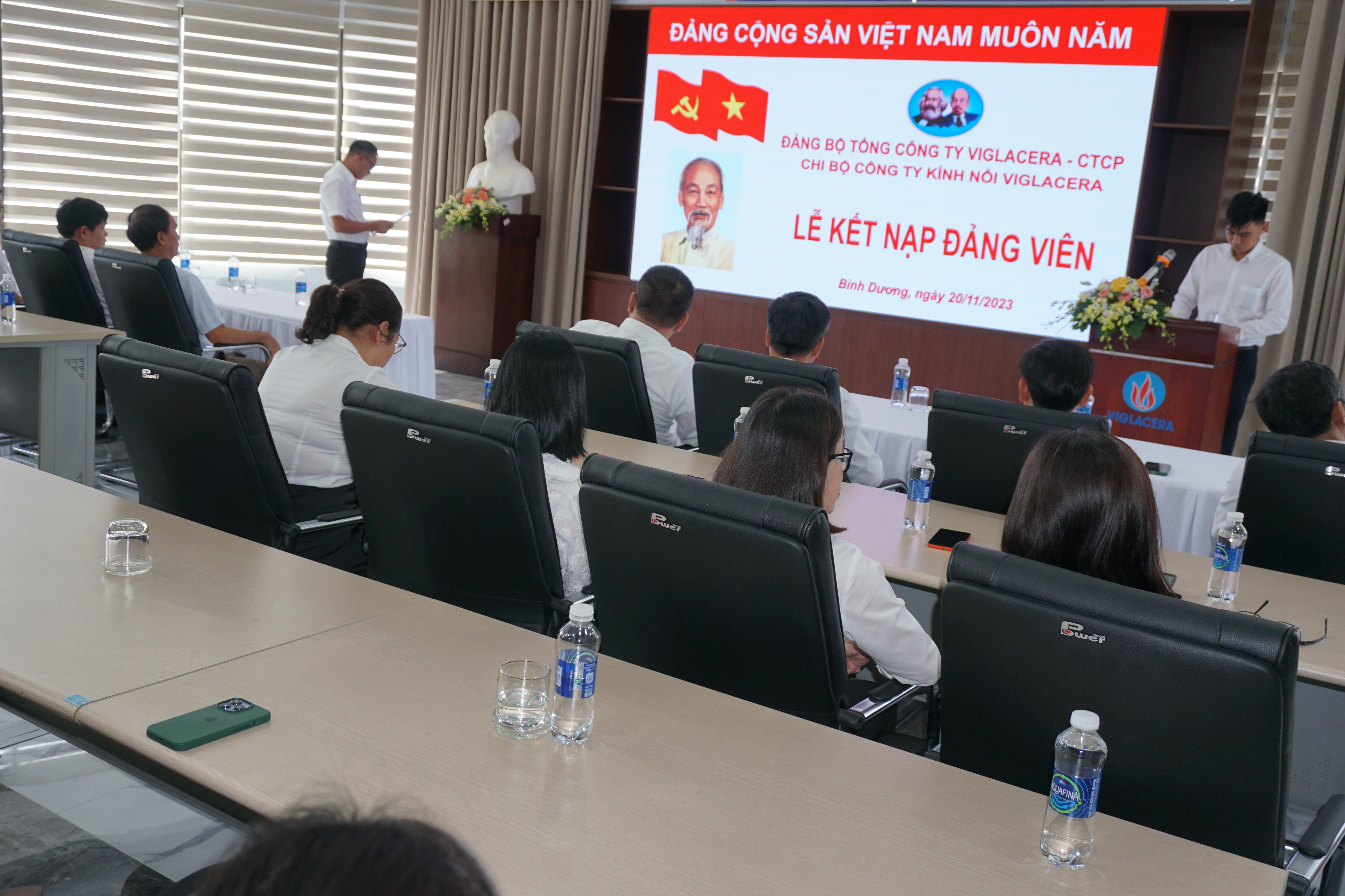 Lễ kết nạp đảng viên được diễn ra trang trọng theo đúng nghi lễ do điều lệ đảng qui định. Dự lễ kết nạp có đ/c Nguyễn Minh Khoa - Ủy viên BCH Đảng bộ Tổng công ty Viglacera- CTCP, Bí thư Chi bộ Công ty Kính nổi Viglacera; Đ/c Huỳnh Anh Thắng – Phó Bí thư chi bộ - Giám đốc Công ty Sứ Viglacera Bình Dương. Đ/c Nguyễn Mạnh Cường – Phó Bí thư Chi bộ, Phó Giám đốc Công Kính nổi Viglacera. Các đồng chí trong Ban Chi ủy Chi bộ và toàn thể đảng viên trong Chi bộ Công ty Kính nổi Viglacera.