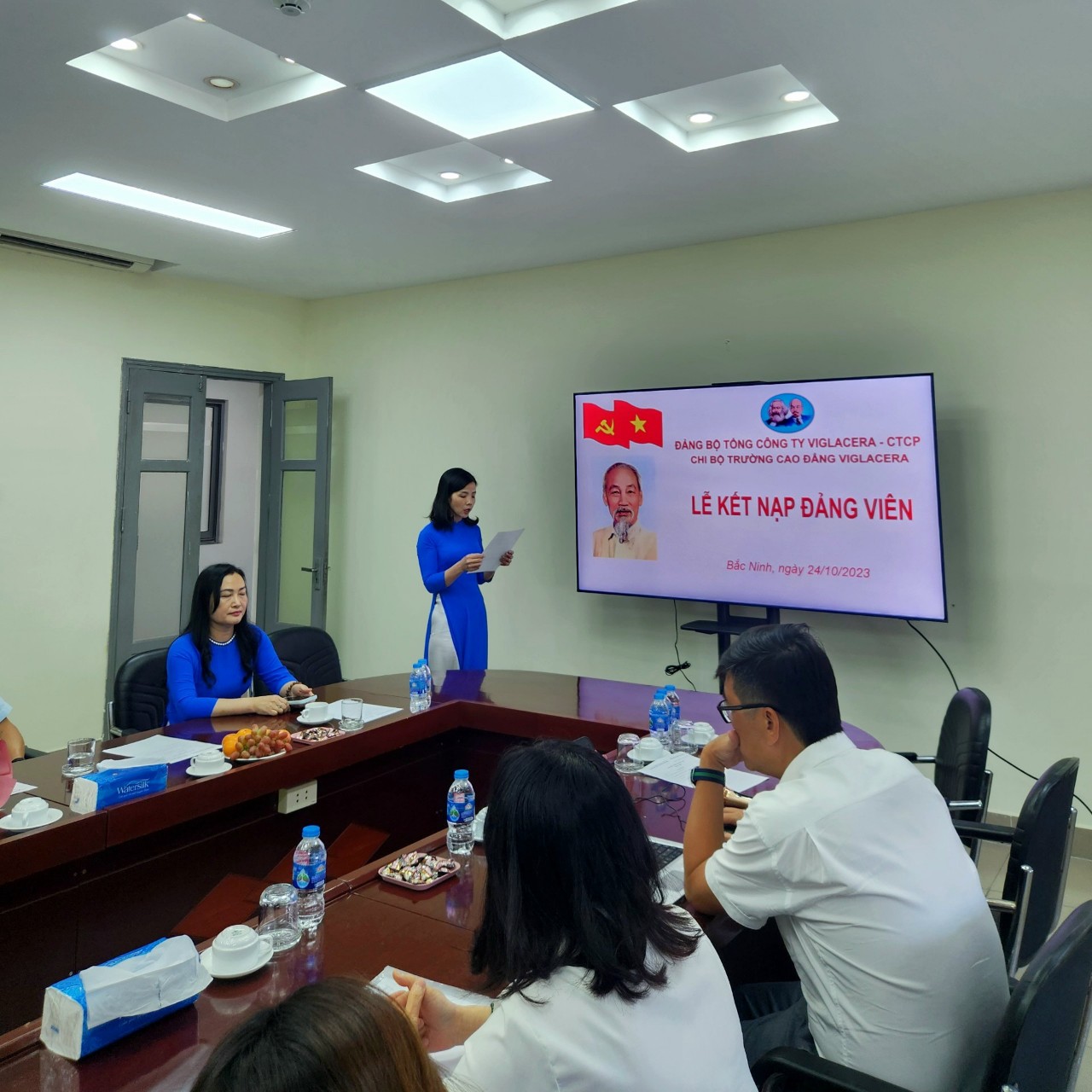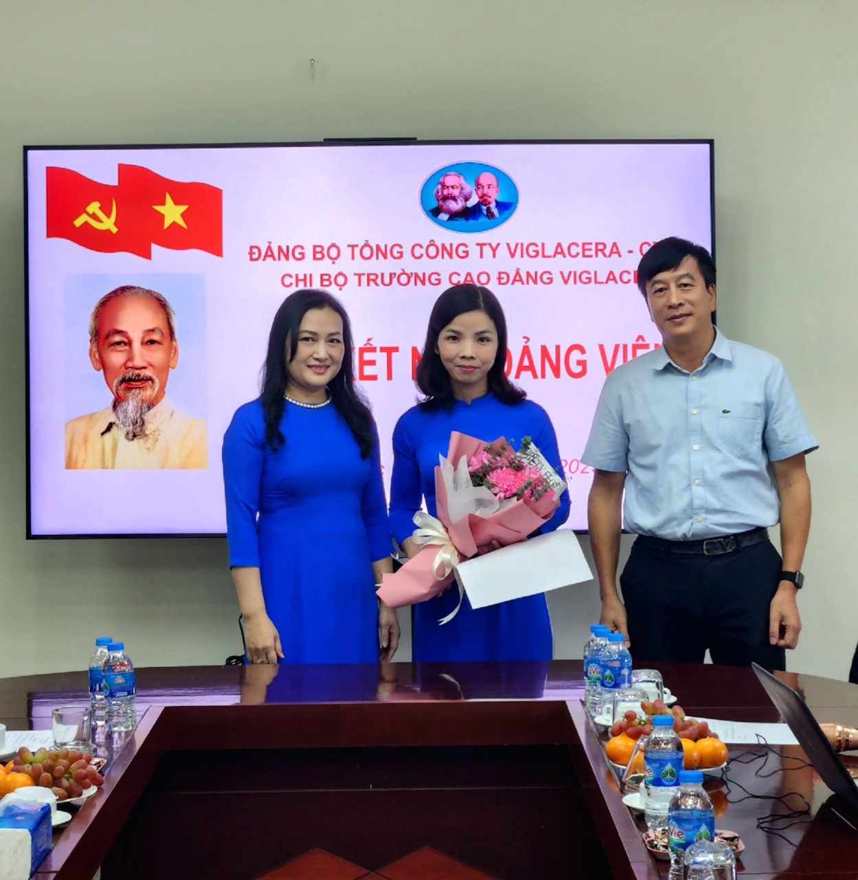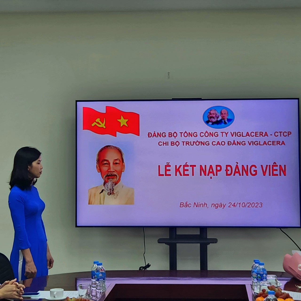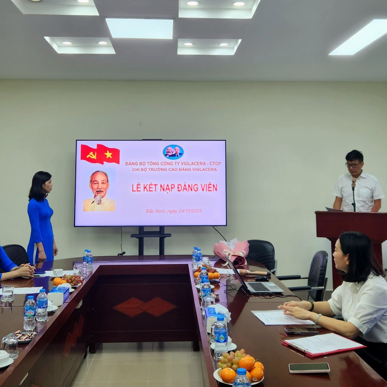 Thực hiện kế hoạch phát triển đảng viên năm 2023 của Đảng bộ Tổng công ty Viglacera -CTCP, ngày 24/10/2023, Chi bộ Trường Cao đẳng Viglacera đã long trọng tổ chức Lễ kết nạp đảng viên mới cho đồng chí Vũ Thi Thanh Huyền.