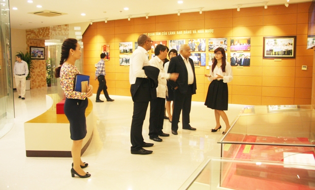 Ban lãnh đạo TCT Viglacera - CTCP và các cán bộ chủ chốt thuộc TCT đã tiếp đoàn tại Nhà truyền thống TCT, đồng giới tham quan trực tiếp “Công trình xanh” - Thăng Long Number One với mong muốn mang lại sự thân mật cũng như cái nhìn khái quát nhất về các lĩnh vực hoạt động và quá trình xây dựng, phát triển vững mạnh của Viglacera.