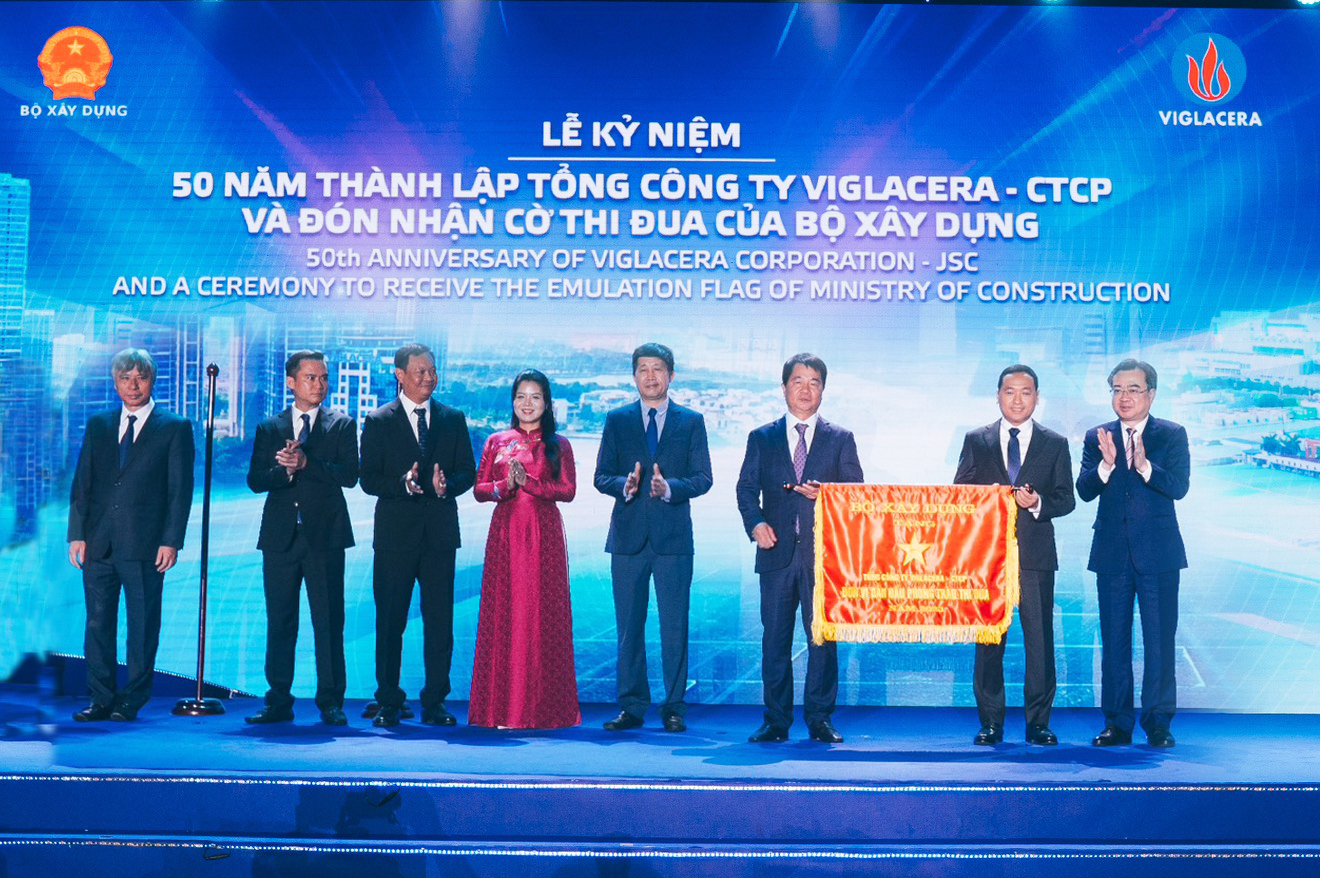 Lãnh đạo Viglacera nhận cờ thi đua của Bộ Xây dựng năm 2024.