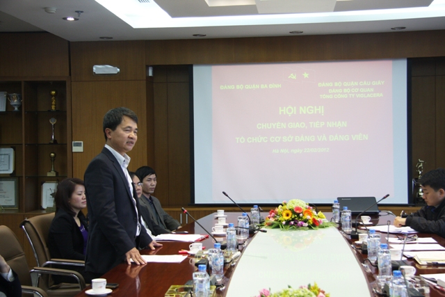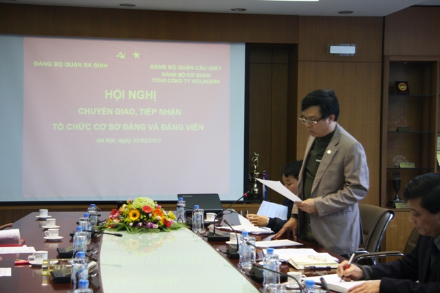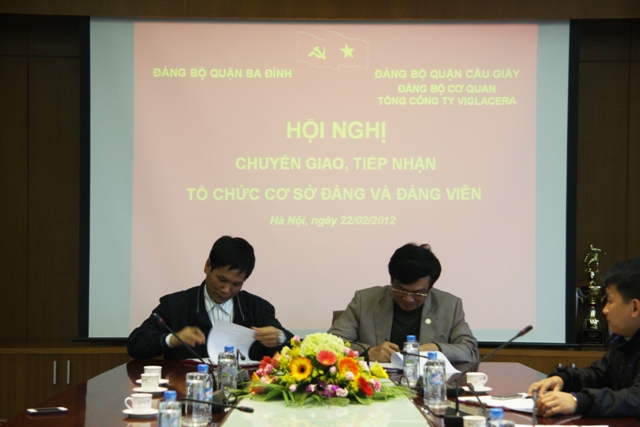 Căn cứ Quyết định số 590-QĐ/QU ngày 17/2/2012 của Ban Thường vụ Quận ủy Ba Đình về việc chuyển Chi bộ Trường Cao đẳng nghề Viglacera trực thuộc Đảng bộ Quận Ba Đình về sinh hoạt tại Đảng bộ quận Cầu giấy và Thực hiện Quyết định số 787-QĐ/QU ngày 20/2/2012 của Ban Thường vụ Quận ủy Cầu Giấy về việc tiếp nhận Chi bộ Trường Cao đẳng nghề Viglacera thuộc Quận ủy Ba Đình về sinh hoạt tại Đảng bộ Cơ quan Tổng công ty Viglacera; Ngày 22/02/2012 tại Tổng công ty Viglacera. Ban Thường vụ Quận ủy Ba Đình, Cầu giấy và Đảng ủy Cơ quan Tổng công ty Viglacera đã tổ chức Lễ chuyển giao, tiếp nhận Tổ chức cơ sở Đảng và Đảng viên Trường Cao đẳng nghề Viglacera về trực thuộc Đảng bộ Cơ quan Tổng công ty Viglacera. Tới dự Hội nghị về phía Quận ủy Cầu Giấy có đồng chí Phương Kiến Quốc, Phó bí thư Quận ủy, Đồng chí Hoàng Hòa Bình, Ủy viên Ban thường vụ, Trưởng ban tổ chức Quận ủy cùng các đ/c chuyên viên. Về phía Quận ủy Ba Đình có đồng chí Đặng Văn Tường, Phó bí thư Quận ủy, Đồng chí Nguyễn Kim Sơn, Ủy viên Ban thường vụ, Trưởng ban tổ chức Quận ủy cùng các đ/c chuyên viên. Về phía Đảng ủy cơ quan Tổng công ty có Đồng chí Nguyễn Anh Tuấn, Bí thư Đảng ủy, Tổng giám đốc Tổng công ty cùng các đồng chí Đảng ủy viên và tập thể Đảng viên đang sinh hoạt tại chi bộ Trường Cao đẳng nghề Viglacera.
