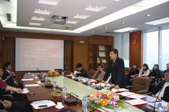 Đồng chí Nguyễn Kim Sơn, Trưởng ban tổ chức Quận ủy Ba Đình công bố quyết định chuyển giao tổ chức cơ sở Đảng và Đảng viên Trường CĐ nghề Viglacera