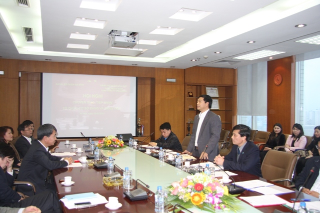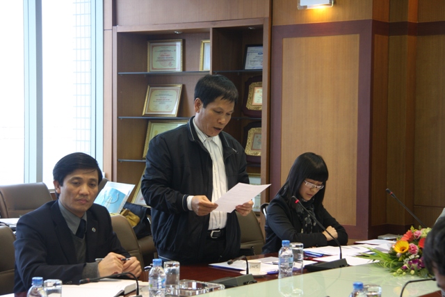 Đồng chí Hoàng Hòa Bình, Trưởng ban tổ chức Quận ủy Cầu Giấy công bố quyết định tiếp nhận tổ chức cơ sở Đảng và Đảng viên Trường CĐ nghề Viglacera