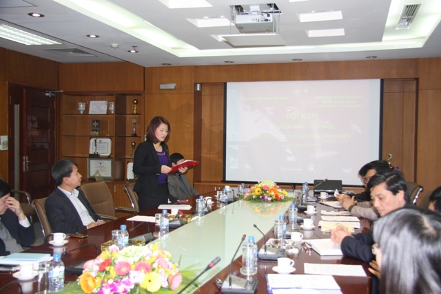 Đồng chí Hoàng Thị Thủy, Bí thư Chi bộ Trường CĐ nghề Viglacera báo cáo tình hình hoạt động của Chi bộ
