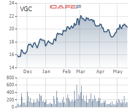 Trong phiên giao dịch đầu tiên trên HoSE, cổ phiếu VGC có thời điểm lên mức giá 21.300 đồng/cp, tăng mạnh so với giá tham chiếu chào sàn (19.900 đồng/cp).