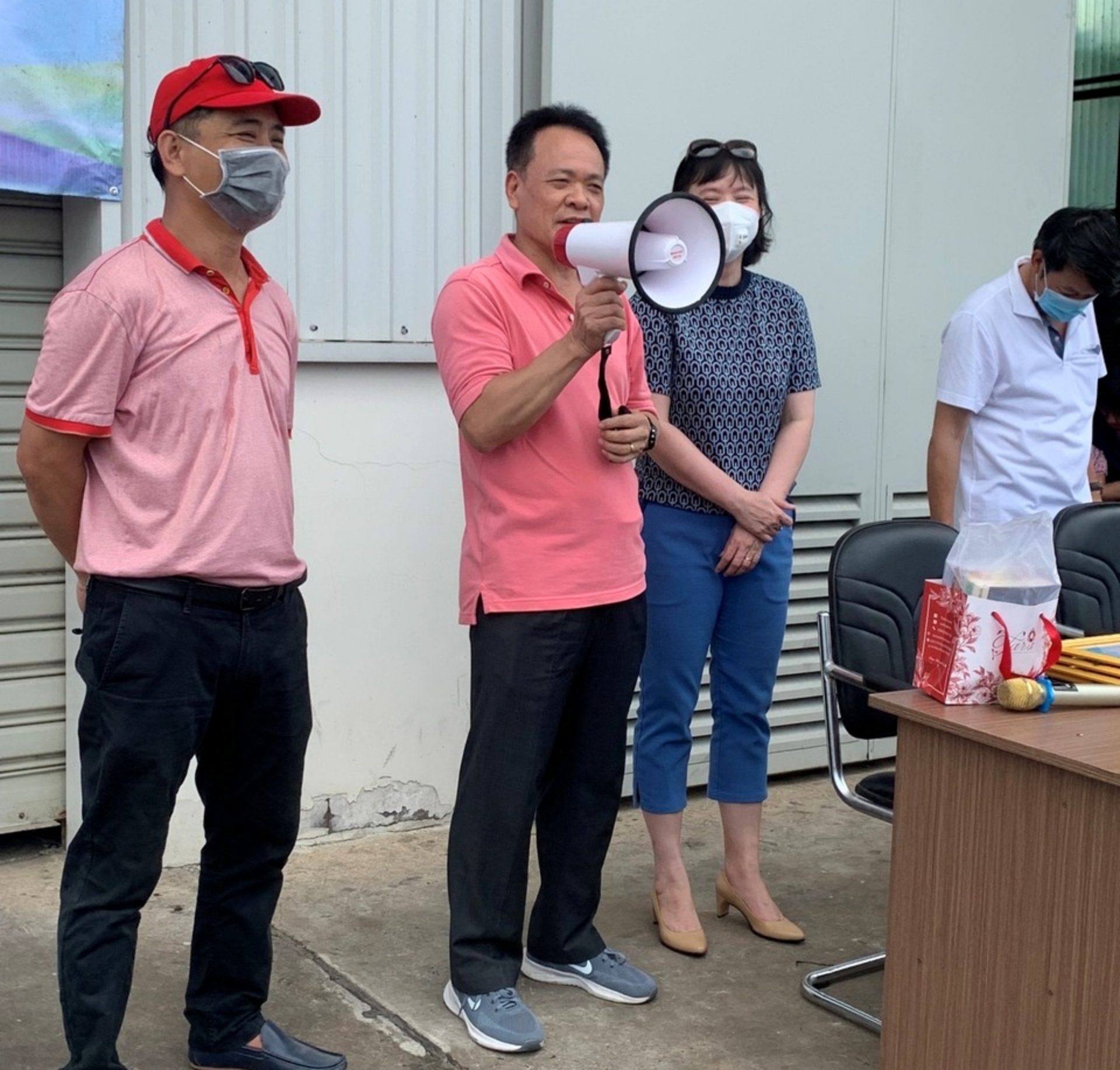 Ông Hoàng Kim Bồng - Phó TGĐ Tổng công ty phát biểu động viên toàn thể CBCNV, người lao động Công ty Kính Phú Mỹ tiếp tục phát huy tinh thần lao động hăng say, đoàn kết đưa kính Phú Mỹ ngày càng phát triển và giữ vững thành trì đơn vị sản xuất 3 tại chỗ không có ca nhiễm Covid19.