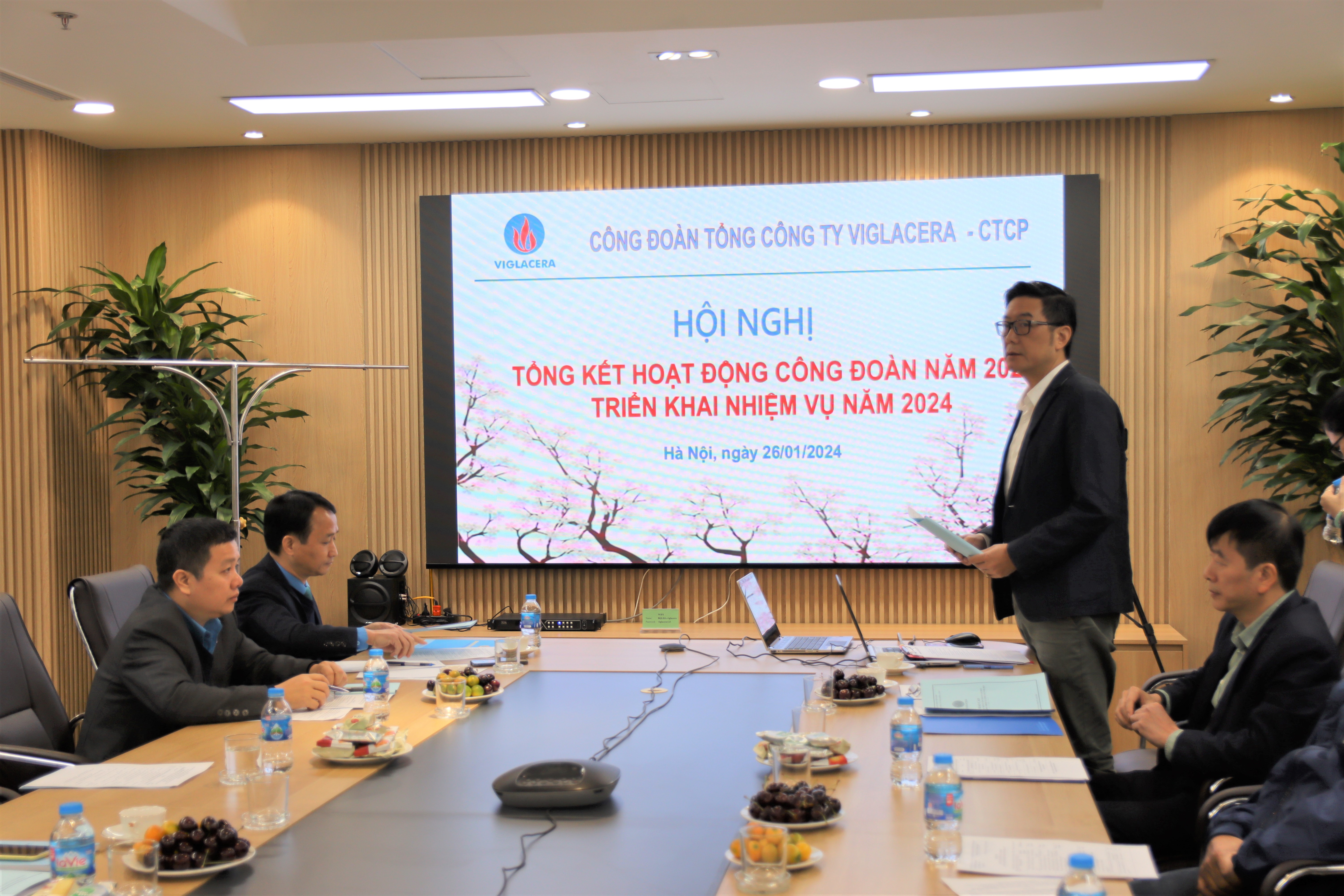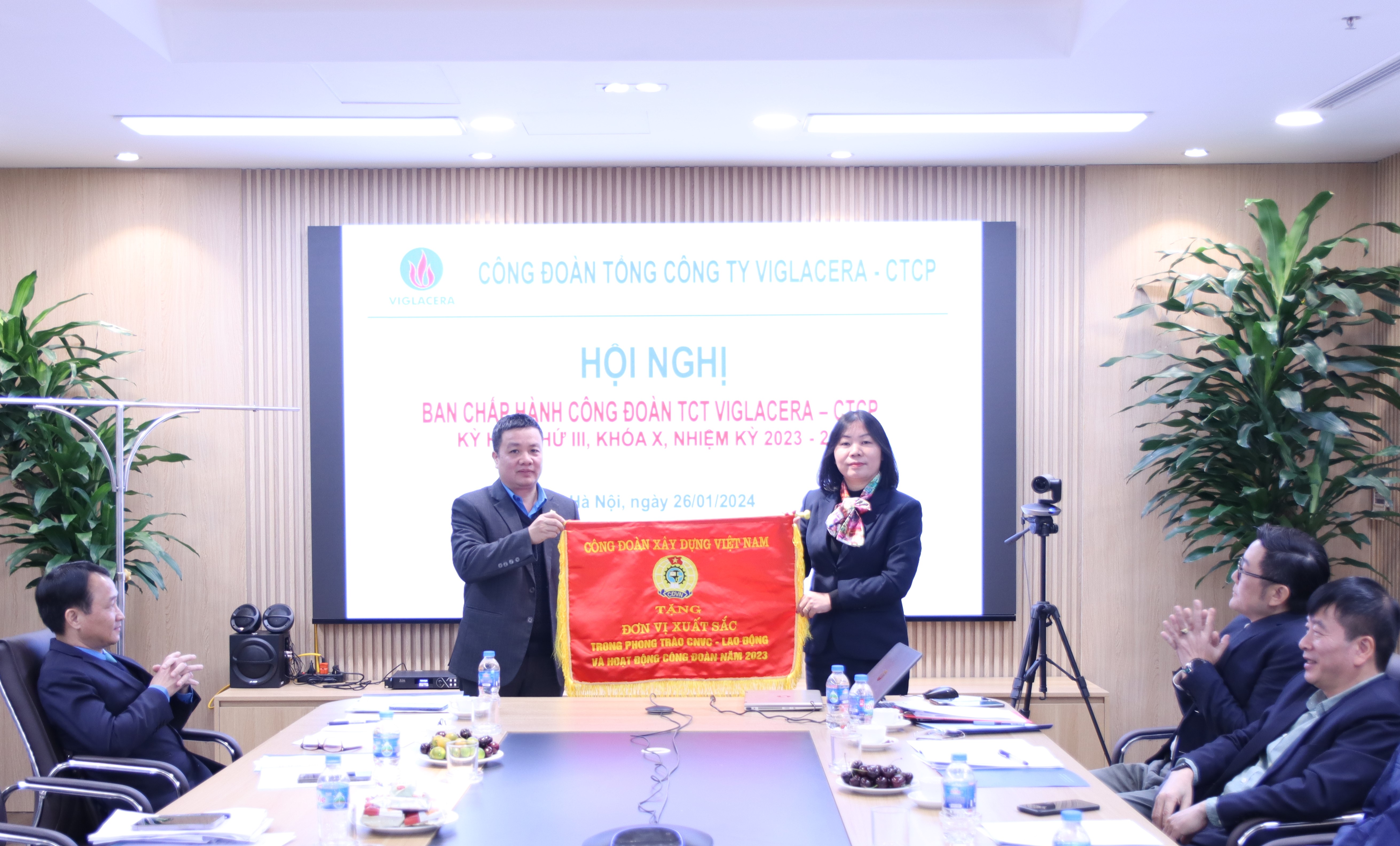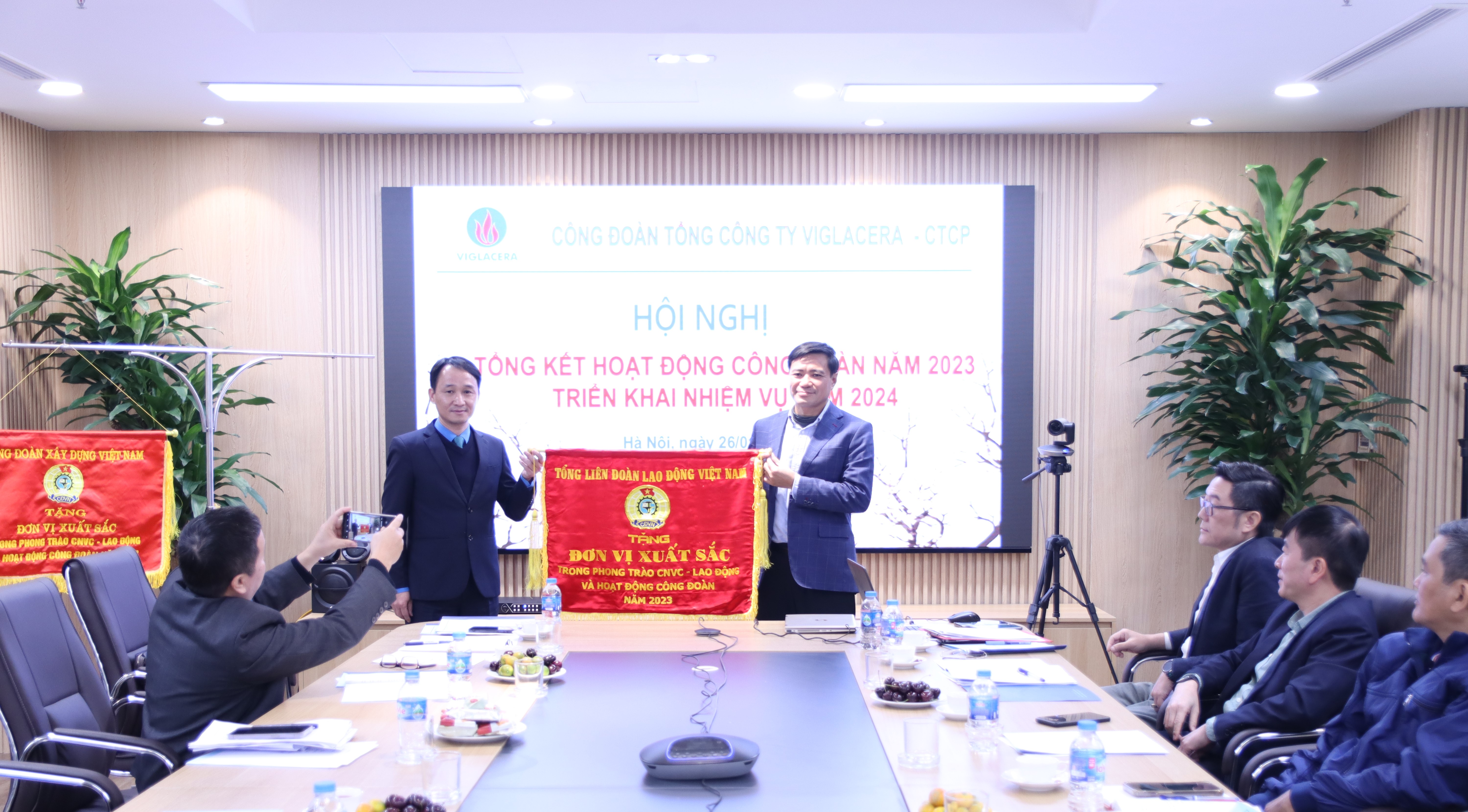 Phó Chủ tịch Công đoàn Xây dựng Việt Nam tin tưởng Công đoàn TCT sẽ tiếp tục phát huy những kết quả đạt được trong năm 2023, xây dựng hoạt động công đoàn Tổng Công ty, các CĐCS ổn định và phát triển hơn nữa, là đại diện bảo vệ quyền và lợi ích chính đáng cũng như đảm bảo đời sống vật chất và tinh thần cho NLĐ. Nhân dịp này, Công đoàn Công ty Cổ phần Viglacera Thăng Long vinh dự nhận Cờ thi đua năm 2023 do Tổng Liên đoàn lao động Việt Nam trao tặng và Công đoàn Công ty Sen Vòi Viglacera vinh dự nhận Cờ thi đua năm 2023 do Công đoàn Xây dựng Việt Nam trao tặng vì đã có thành tích xuất sắc trong hoạt động công đoàn. Nhiều tập thể, cá nhân CĐCS được tặng Bằng khen của CĐXD và Giấy khen của Công đoàn Tổng công ty…