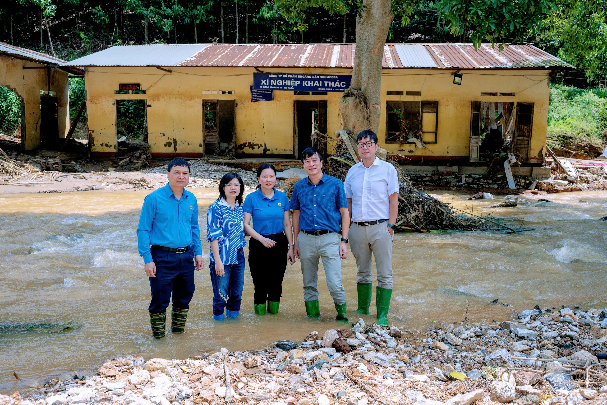 Công đoàn Xây dựng Việt Nam và Công đoàn TCT thăm hỏi người lao động bị ảnh hưởng bởi lũ quét tại Công ty CP Khoáng sản Viglacera (Yên Bái)