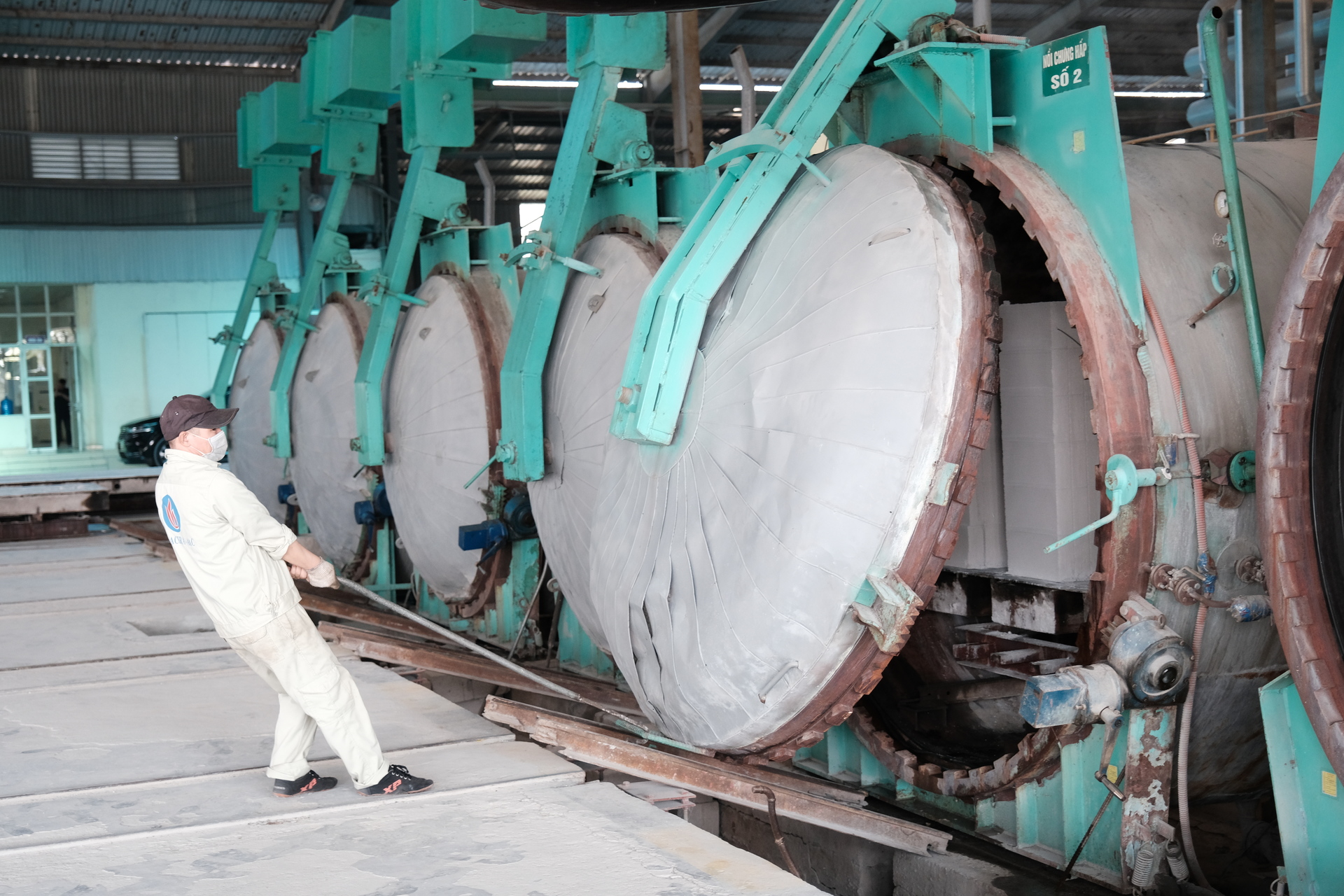 Người lao động tại Công ty Cổ phần Bê tông khí Viglacera làm việc chăm chỉ để đưa ra thành phẩm chất lượng nhất
