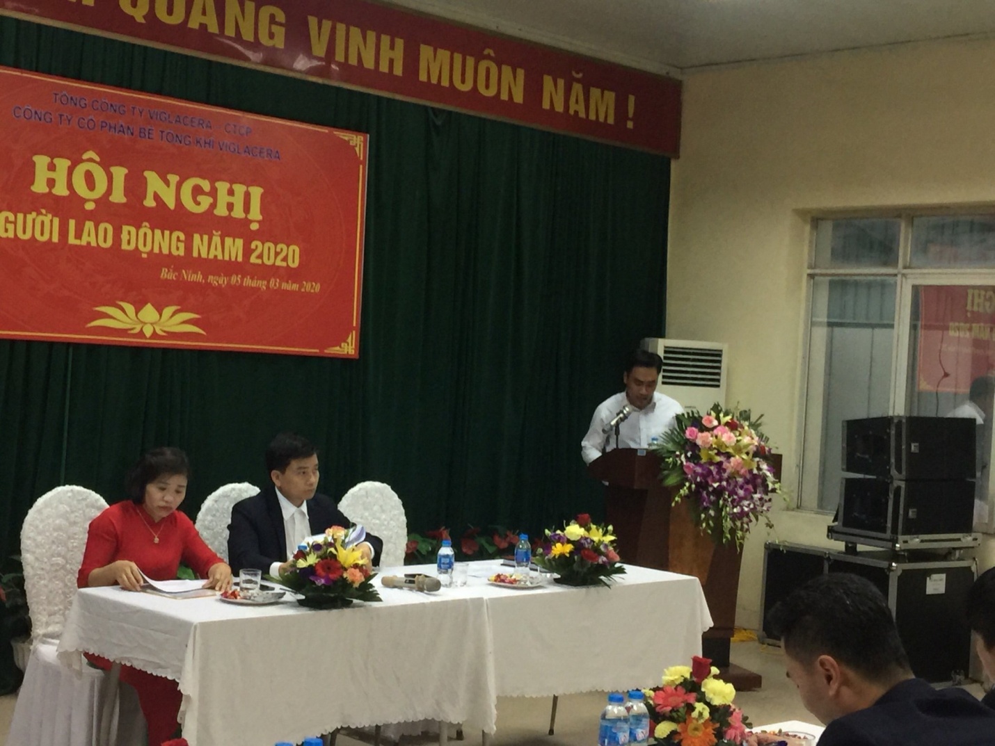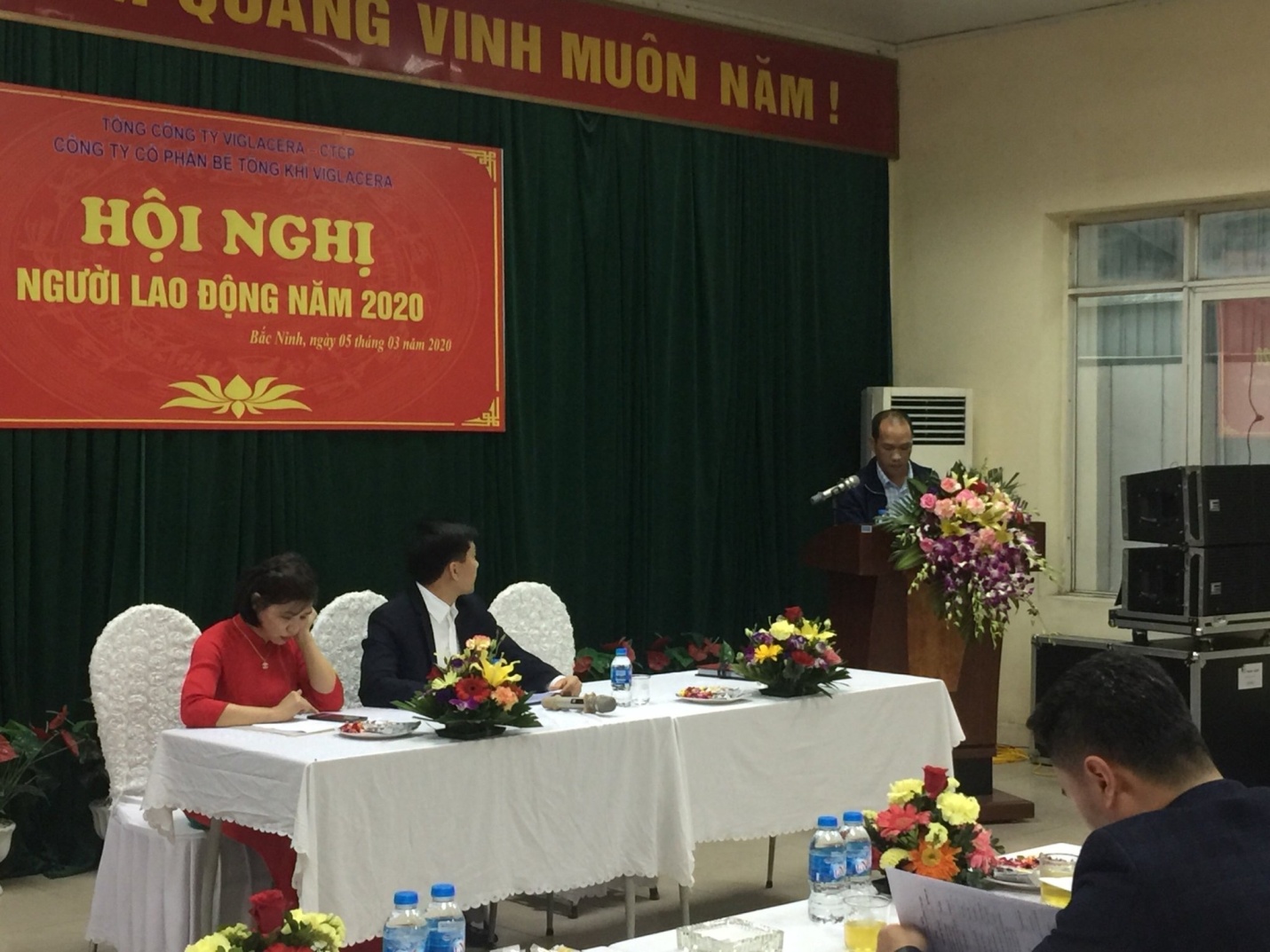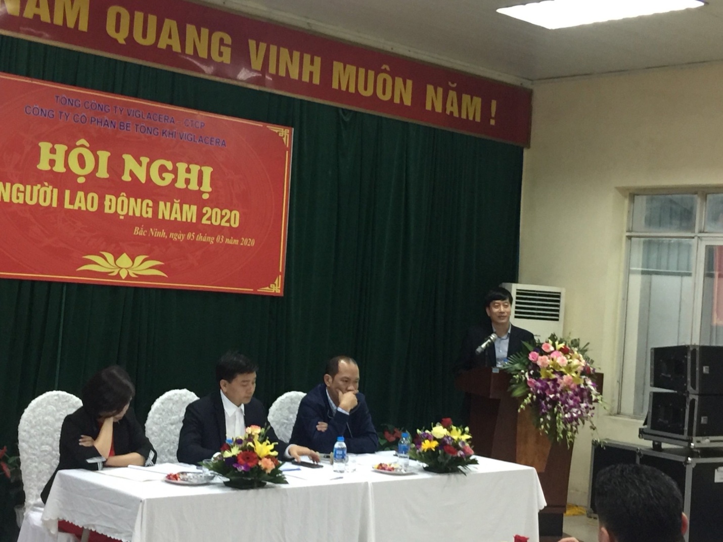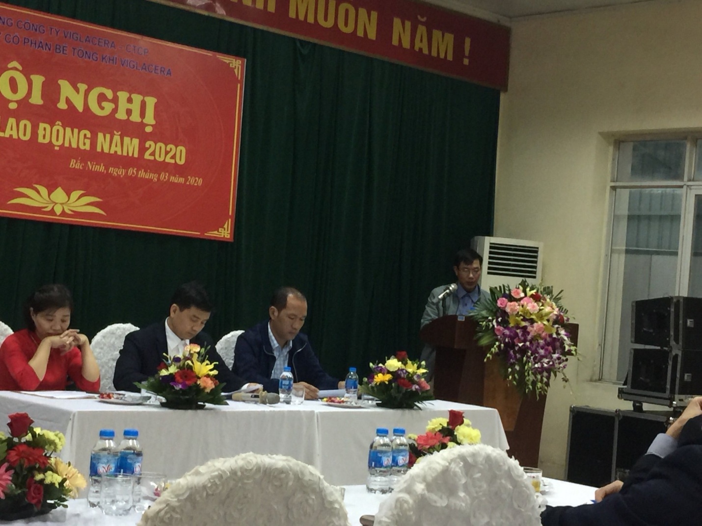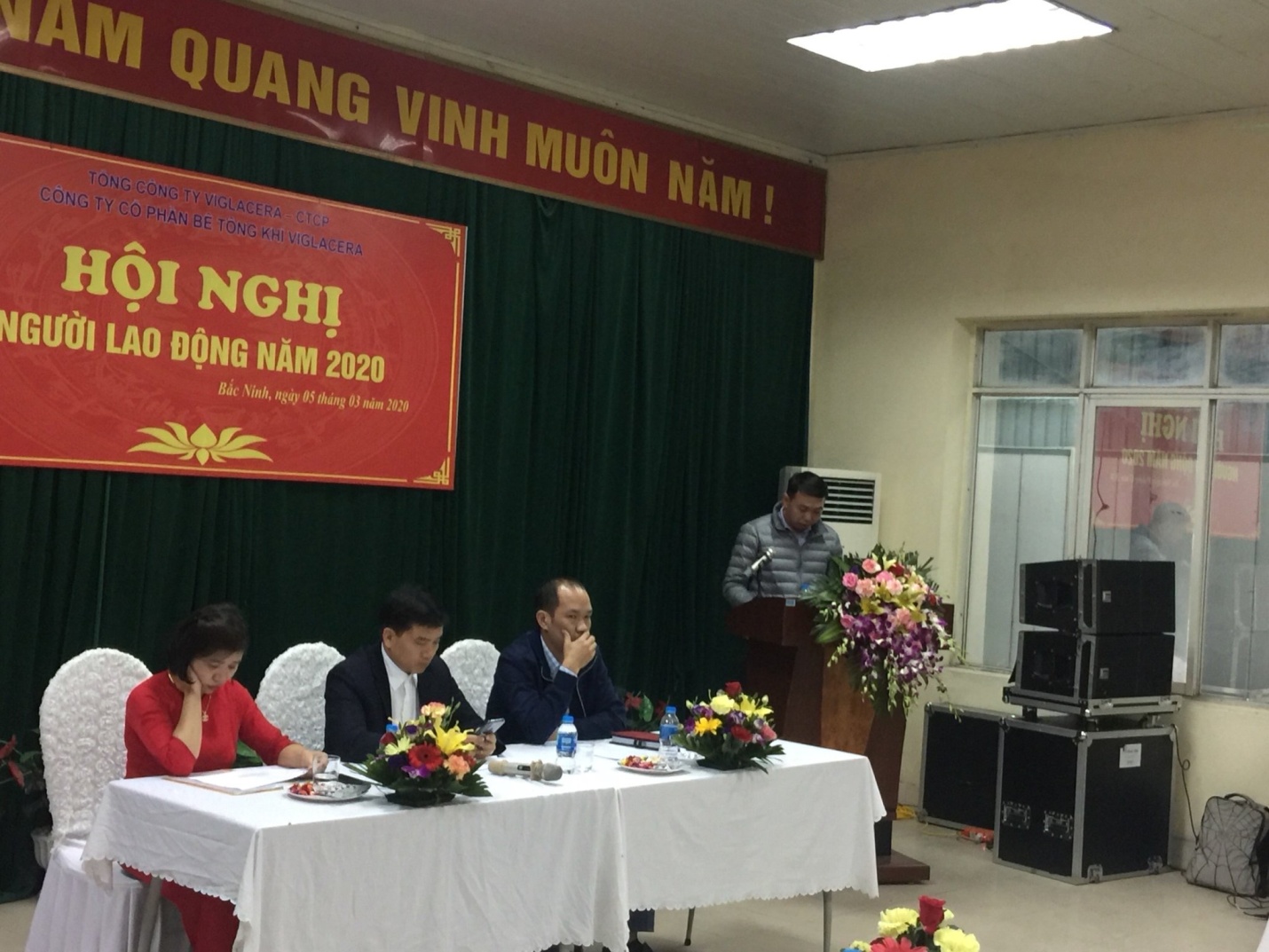 Ngày 05/03/2020, tại Khu công nghiệp Yên Phong, Bắc Ninh, Công ty Cổ phần bê tông khí Viglacera đã tổ chức Hội nghị người lao động năm 2020. Về dự Hội nghị có đồng chí Nguyễn Quý Tuấn, Chủ tịch Công đoàn Tổng Công ty; đồng chí Lê Tiến Dũng, chủ tịch HĐQT, người đại diện phần vốn của Tổng công ty Viglacera – CTCP tại Công ty cổ phần bê tông khí Viglacera.