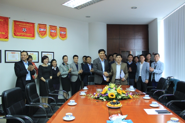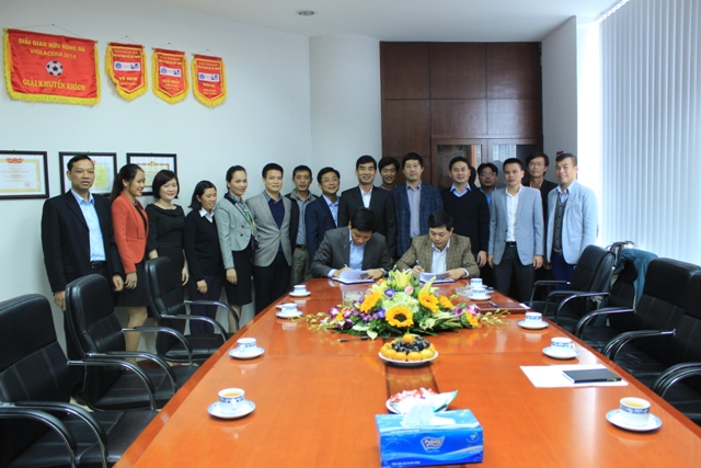 Ông Nguyễn Mạnh Hiếu – Giám đốc Công ty cổ phần Kinh doanh gạch ốp lát Viglacera và ông Dương Văn Thẩm – Q. Giám đốc Công ty cổ phần Bê tông khí Viglacera ký kết Hợp đồng bao tiêu sản phẩm