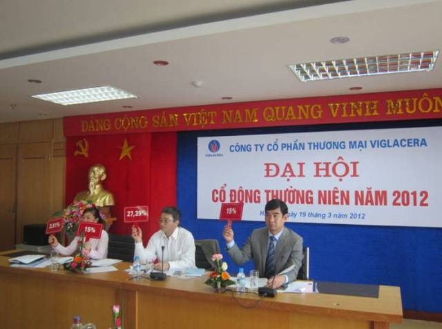 Ngày 19/03/2012 Công ty CP Thương mại Viglacera long trọng tổ chức Đại hội cổ đông thường niên 2012 tại Tầng 15 Tòa nhà Viglacera