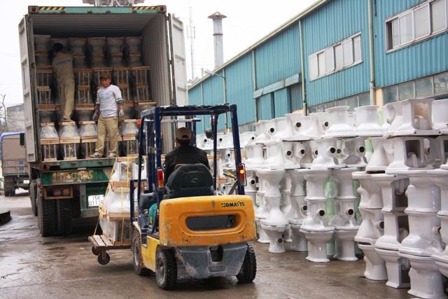 CBCNV Công ty CP Viglacera Thanh Trì đang tất bật chuẩn bị cho container hàng xuất sang Mỹ