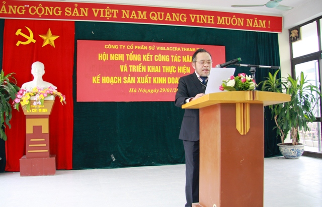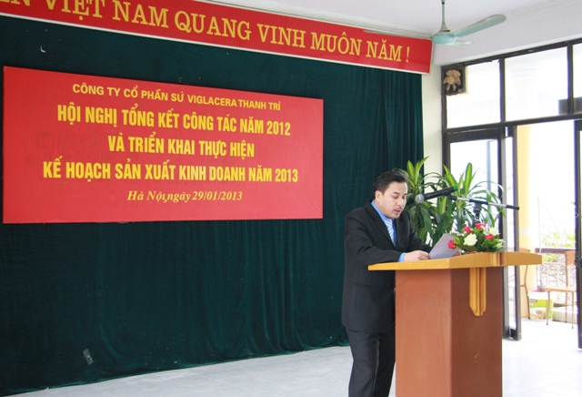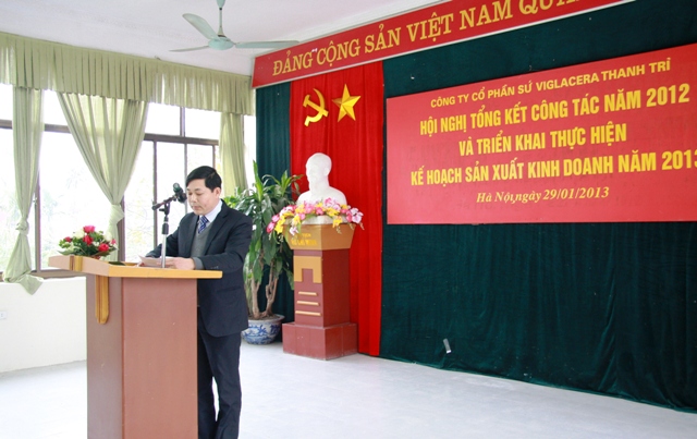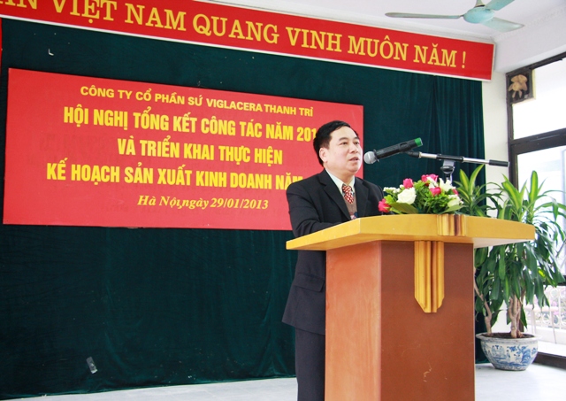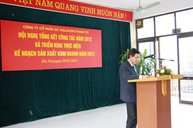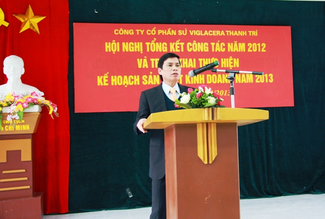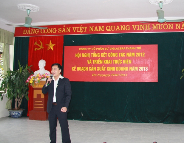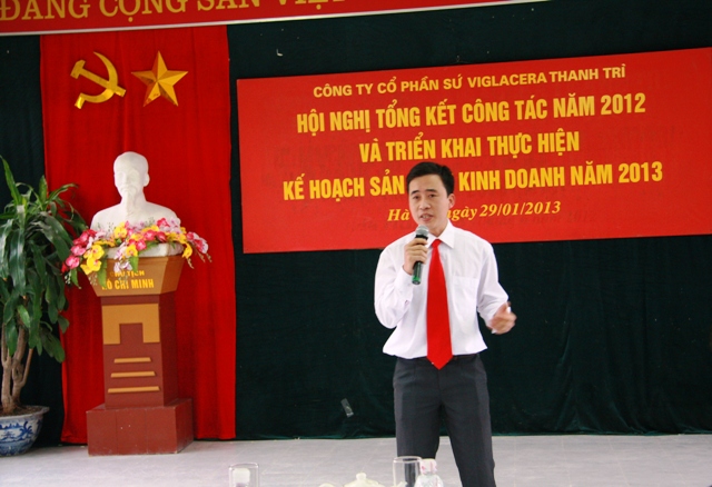 Phó TGĐ TCT - Chủ tịch HĐQT Công ty CP Sứ Viglacera Thanh Trì - Nguyễn Minh Tuấn phát biểu tại hội nghị đánh giá kết quả thực hiện kế hoạch SXKD năm 2012 và triển khai nhiệm vụ kế hoạch sản xuất kinh doanh năm 2013