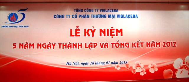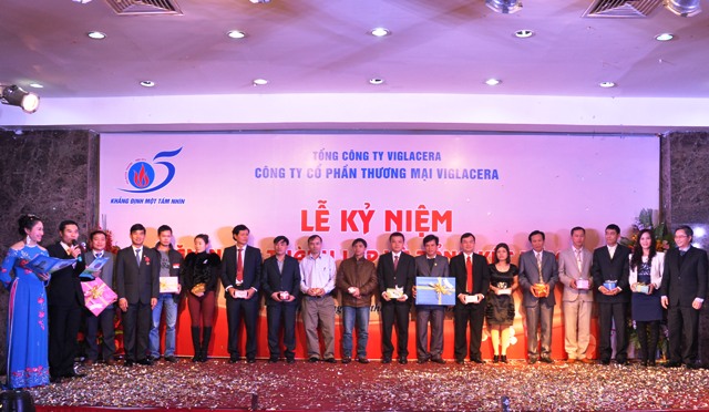 Ngày 18/01/2013, Công ty CP Thương Mại Viglacera long trọng tổ chức Lễ kỷ niệm 5 năm ngày thành lập và đón nhận Bằng khen của Thủ tướng Chính phủ. Đây là niềm vui, niềm tự hào lớn của toàn thể cán bộ công nhân viên Công ty CP Thương Mại Viglacera nói riêng và Tổng công ty Viglacera nói chung. Lễ kỷ niệm này còn là dịp gặp gỡ, giao lưu và là dịp tri ân đến khách hàng thân thiết đã đồng hành cùng Công ty trong nhiều năm qua.