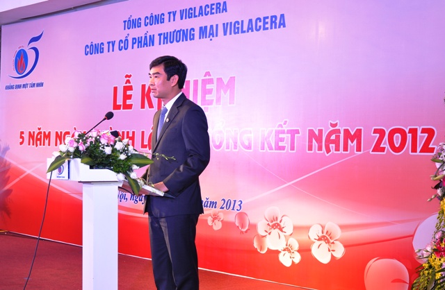 Tại Lễ kỷ niệm, Ông Nguyên Anh Tuấn – Tổng giám đốc Tổng công ty Viglacera đã phát biểu: “Tôi rất phấn khởi trong dịp đầu năm được về dự Lễ KN 5 năm thành lập Công ty cổ phần Thương Mại Viglacera. Sự phát triển của Công ty gắn liền với việc cơ cấu lại hoạt động kinh doanh trong nhóm Sứ và Sen vòi theo hướng tập hợp lại để phát huy sức mạnh tổng thể, nâng cao khả năng cạnh tranh của các sản phẩm sứ Viglacera theo hướng chuyên môn hóa và chuyên nghiệp hóa. Kết quả sau 5 năm tái cơ cấu, hôm nay khi nhìn lại chặng đường đã đi qua, Công ty đã luôn cố gắng phấn đấu không ngừng kể cả trong những giai đoạn khó khăn nhất của nền kinh tế toàn cầu và Việt Nam. Việc Công ty tổ chức lễ kỷ niệm gắn liền với việc hoàn thành xuất sắc nhiệm vụ KH năm 2012 càng khẳng định sự phát triển đúng hướng và vị trí của nhóm Sứ - Sen vòi và Thương mại. Đây cũng là một điểm sáng trong các đơn vị sản xuất VLXD của Viglacera, liên tục tăng trưởng về lợi nhuận kể cả trong lúc khó khăn, nhất là 2 năm 2011 – 2012. Thành quả đáng khích lệ ngày hôm nay là nhờ sự quan tâm, chỉ đạo của BXD; sự chỉ đạo quyết liệt và đúng hướng của lãnh đạo TCT qua các thời kỳ, sự cố gắng nỗ lực của 4 đơn vị sản xuất; sự phối hợp, hợp tác của các bạn hàng, đối tác. Đáp lại sự kỳ vọng đó, chúng tôi sẽ tiếp tục tập trung vào lĩnh vực này để Sứ - Sen vòi mang thương hiệu Viglacera tiếp tục trở thành mũi nhọn đứng trong TOP đầu tại Việt Nam và khu vực, để khẳng định một tầm nhìn như đã cam kết. Nhân dịp năm mới xin trân trọng cảm ơn lãnh đạo Bộ Xây dựng, cảm ơn sự hợp tác của các đối tác, bạn hàng. Chúc các Quý vị đại biểu và các bạn hàng năm mới sức khỏe và hạnh phúc và đón một mùa xuân mới với thắng lợi mới, thành công mới…”