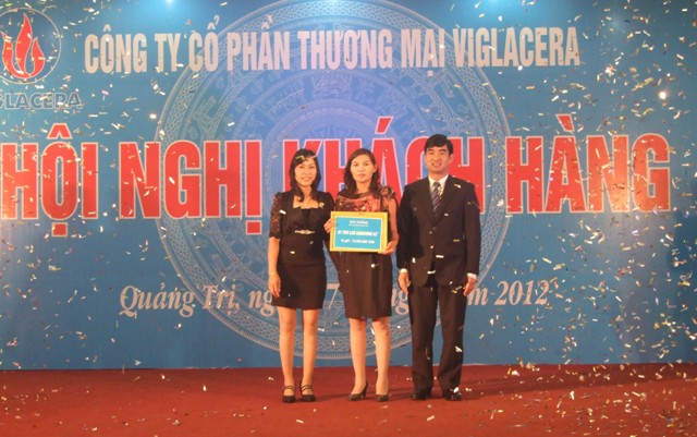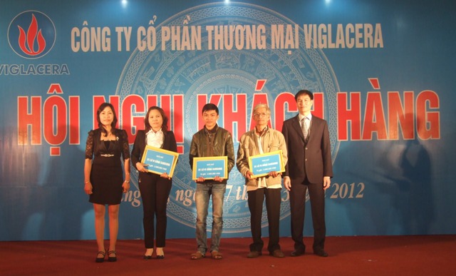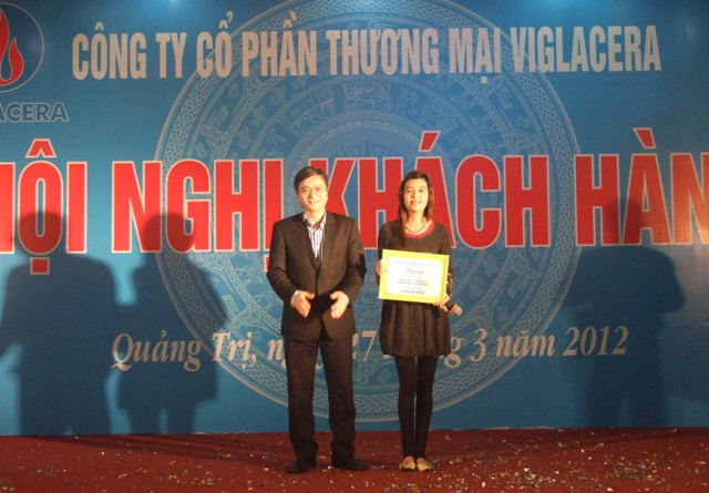 Công ty tiến hành trao thưởng bằng hiện vật trị giá từ 2 triệu đến 15 triệu cho 12 khách hàng tiêu biểu trong tiêu thụ sứ vệ sinh – sen vòi Viglacera năm 2011 tại Quảng Trị.