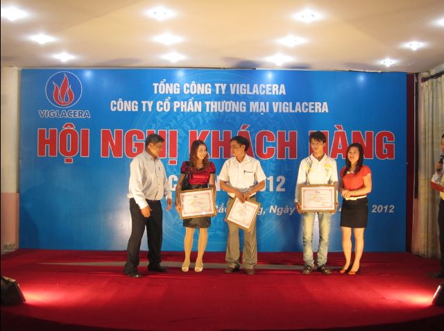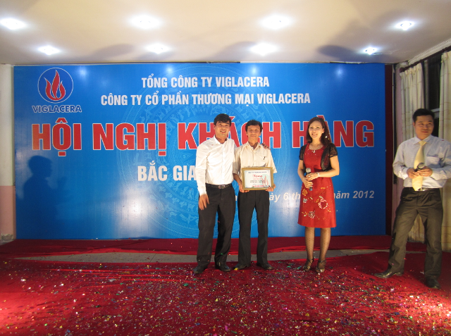Nhằm bày tỏ sự cảm ơn sâu sắc tới các bạn hàng đã và đang ủng hộ sản phẩm sứ vệ sinh – sen vòi Viglacera, Công ty CP Thương mại Viglacera tiến hành trao thưởng bằng hiện vật trị giá từ 1 triệu đến 4,5 triệu đồng cho 12 khách hàng tiêu biểu trong tiêu thụ sứ vệ sinh – sen vòi Viglacera năm 2011 tại tỉnh Bắc Giang.