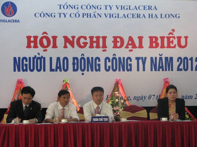 Thực hiện kế hoạch số 14/CĐ-VP của Tổng Công ty – Công đoàn Tổng Công ty ngày 01/02/2012 về việc tổ chức Đại hội công nhân viên chức, Hội nghị người lao động năm 2012. Căn cứ kế hoạch số 50/CT-CĐ CT ngày 10/02/2012 của Tổng giám đốc Công ty và Công đoàn Công ty về việc triển khai hội nghị người lao động cấp bộ phận tại Công ty. Ngày 07 tháng 03 năm 2012 Công ty Viglacera Hạ long đã tiến hành tổ chức hội nghị Hội nghị đại biểu người lao động Công ty năm 2012. Hội nghị được vinh dự đón đồng chí Nguyễn Quý Tuấn - Ủy viên HĐ thành viên - Chủ tịch Công đoàn Tổng Công ty, Đ/c Phạm Hoài Ân - Ủy viên ban thường vụ – Trưởng ban chính sách pháp luật LĐLĐ tỉnh Quảng Ninh đã đến dự. Về phía Công ty CP Viglacera Hạ Long có Đ/c Nguyễn Văn Đức – Bí thư Đảng ủy - Q.Tổng giám đốc Công ty, các Đ/c Nguyễn Văn Liễn - Chủ tịch Công đoàn, Đ/c Trần Trung Kiên – Bí thư ĐTN Công ty cùng các đồng chí Giám đốc, Phó giám đốc các phòng ban, đơn vị thành viên, Ban thường vụ Công đoàn, 183 CBCNV là đoàn viên Công đoàn ưu tú tiêu biểu xuất sắc và 47 khách mời và đại biểu đã về dự.