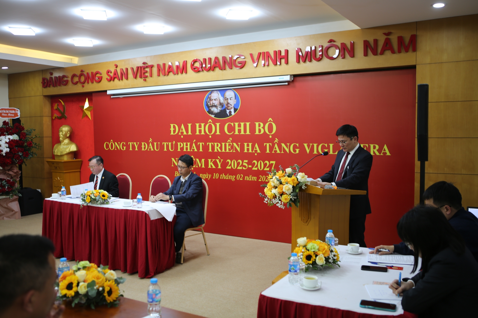 Phát biểu chỉ đạo Đại hội, đồng chí Nguyễn Quý Tuấn - Phó Bí thư - Chủ nhiệm UBKT Đảng ủy Tổng công ty đã ghi nhận những thành tích của Ban chi ủy, của các đồng chí đảng viên trong chi bộ nhiệm kỳ 2022 - 2025 góp phần vào thành tích chung của Đảng bộ. Chi bộ Công ty Đầu tư Phát triển Hạ tầng Viglacera là một trong những chi bộ mạnh của Đảng bộ Tổng công ty. Chi bộ với hơn 40 Đảng viên, 04 tổ Đảng nằm rải rác ở các địa bàn khác nhau, cần phát huy hơn nữa tiềm năng, thế mạnh của mỗi người Đảng viên để góp phần vào việc phát triển chung của Công ty.