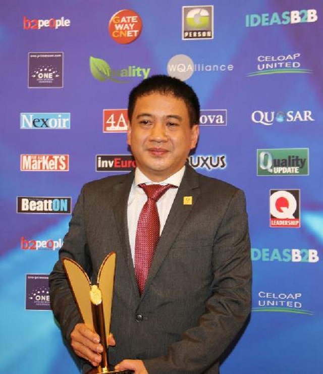 Ông José E.Prieto, Chủ tịch kiêm CEO của BID trao giải thưởng “World quality commitment - Cam kết chất lượng đẳng cấp quốc tế” cho Giám đốc Công ty Kính nổi Viglacera Nguyễn Minh Khoa tại Paris - Pháp