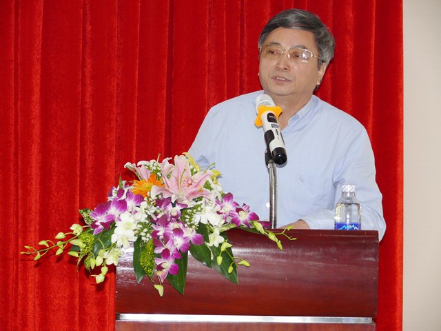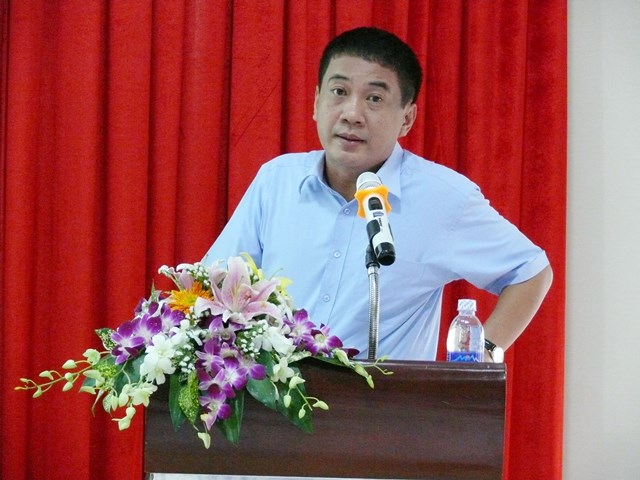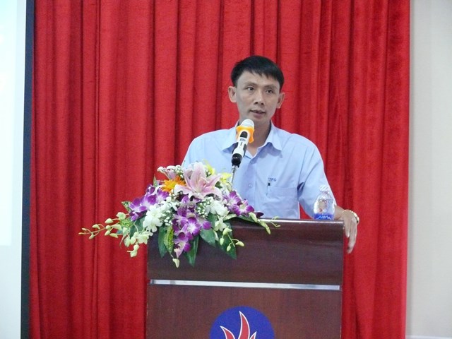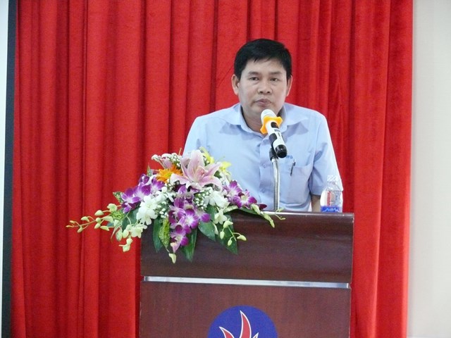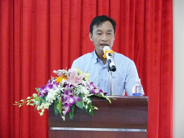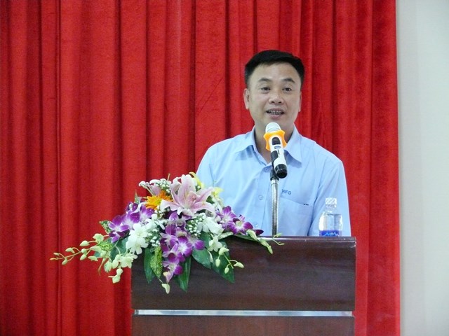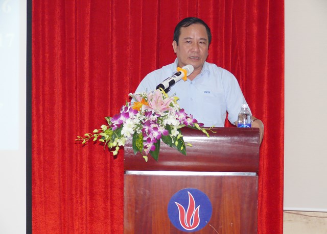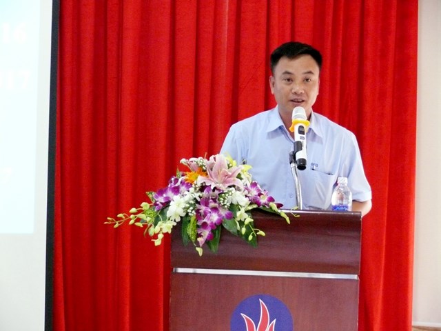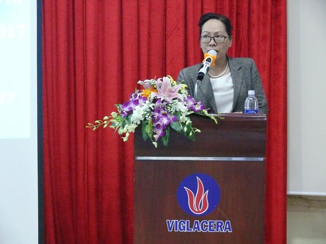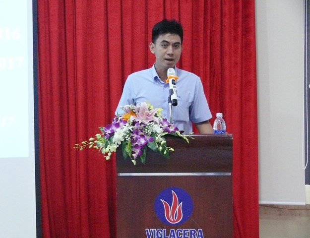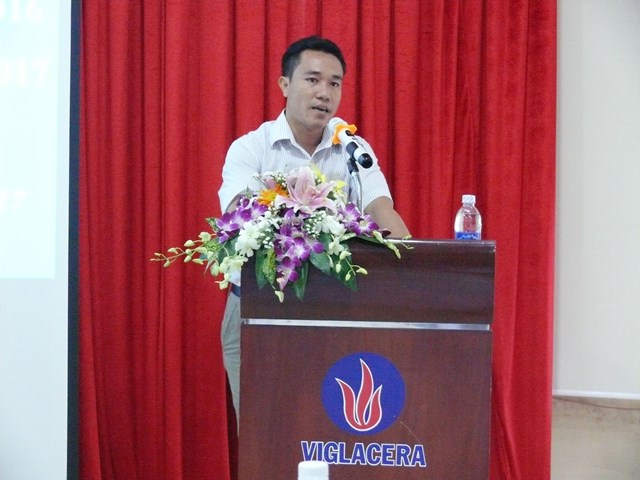 Giám đốc Công ty Kính nổi Viglacera Nguyễn Minh Khoa báo cáo đánh giá kết quả hoạt động SXKD năm 2016 của Công ty