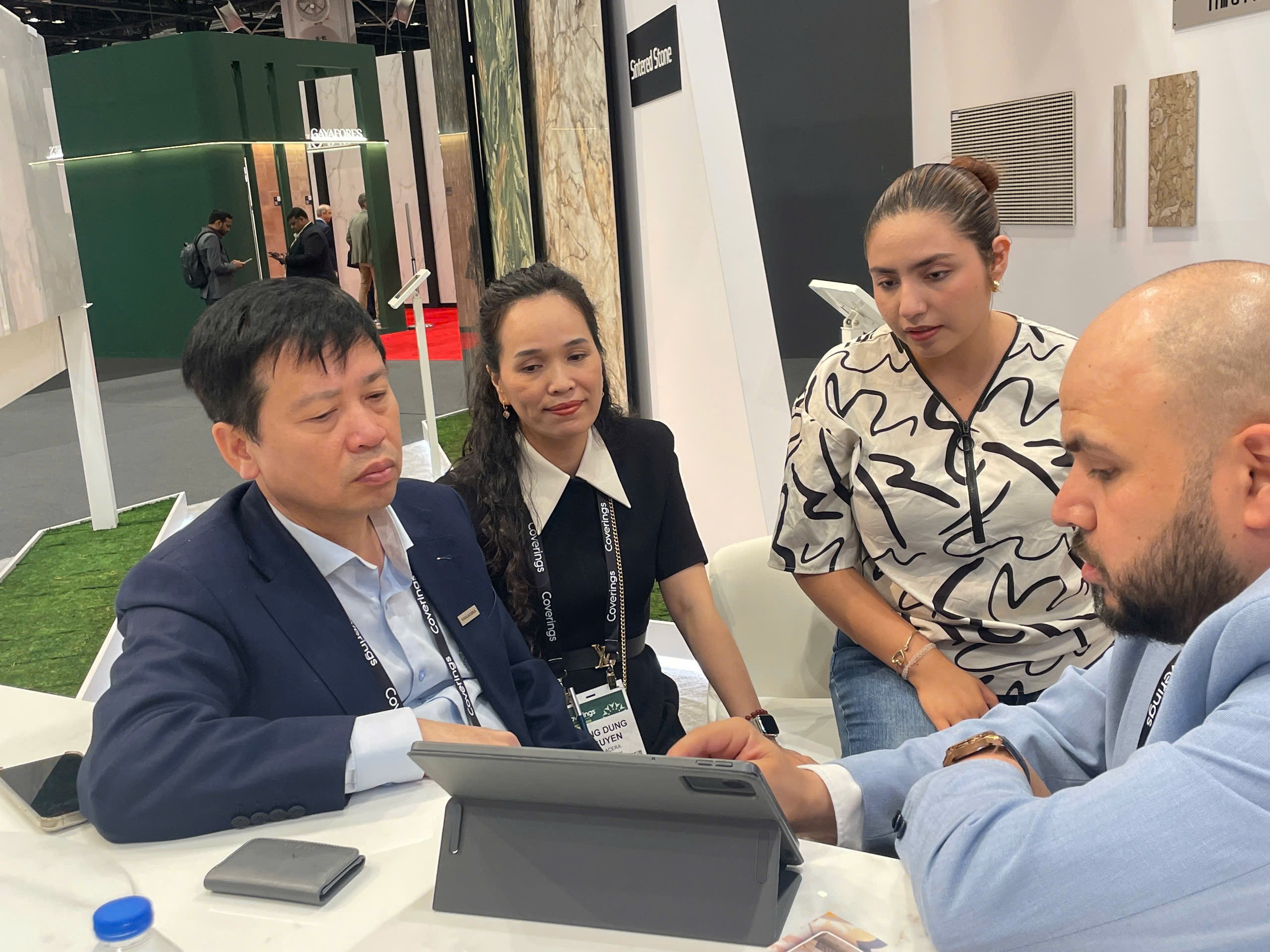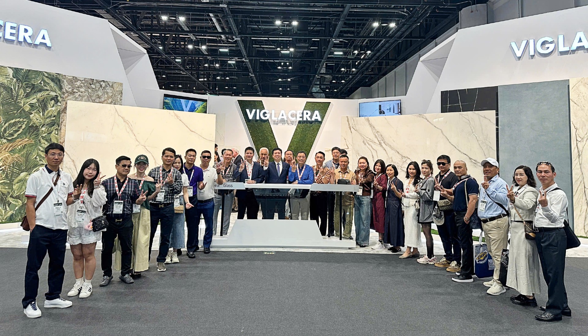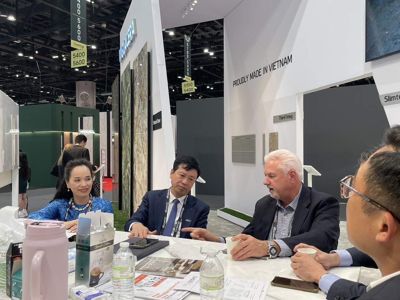 Hệ thống các nhà phân phối gắn bó lâu năm với Viglacera và Công ty CP Kinh doanh Gạch ốp lát Viglacera đã có mặt tại Gian hàng trong thời khắc Khai mạc Coverings 2025.