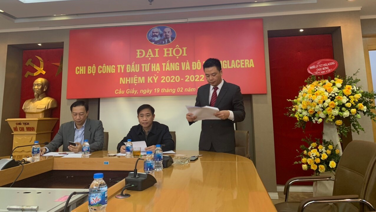 Thực hiện kế hoạch 691/KH-ĐU ngày 04/10/2019 của Đảng ủy TCT Viglacera - CTCP, được sự đồng ý của Ban thường vụ Đảng ủy, Sáng ngày 19 tháng 2 năm 2020, Chi bộ Công ty Đầu tư Hạ tầng và Đô thị Viglacera đã tổ chức Đại hội Chi bộ, nhiệm kỳ 2020 - 2022. Đồng chí Trần Ngọc Anh, Ủy viên Ban thường vụ Đảng ủy, Phó Tổng Giám đốc Tổng Công ty Viglacera - CTCP đã đến dự và phát biểu chỉ đạo Đại hội.