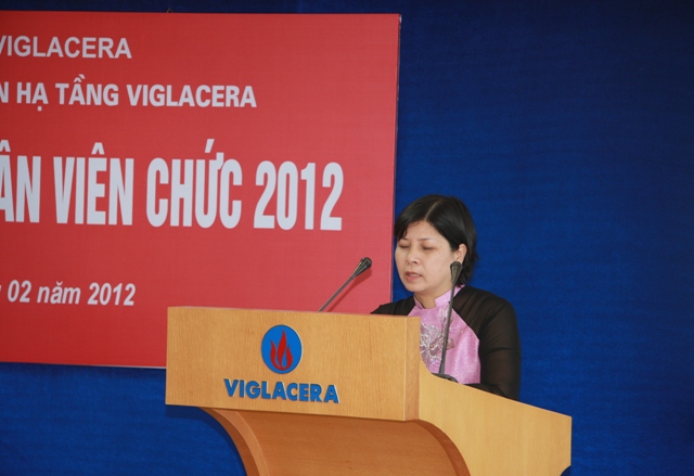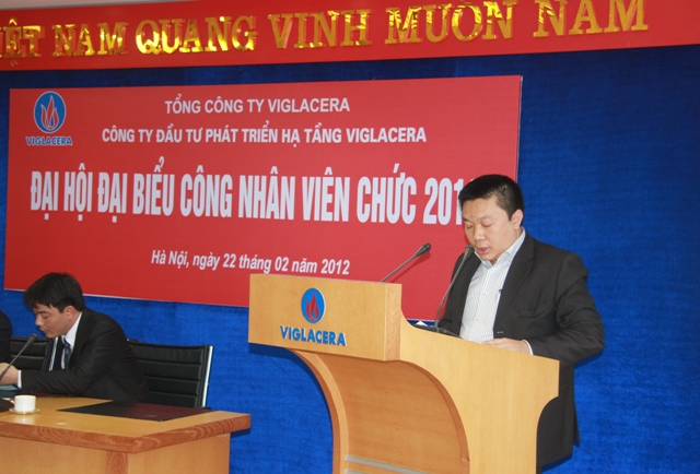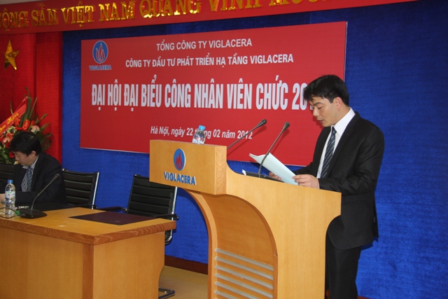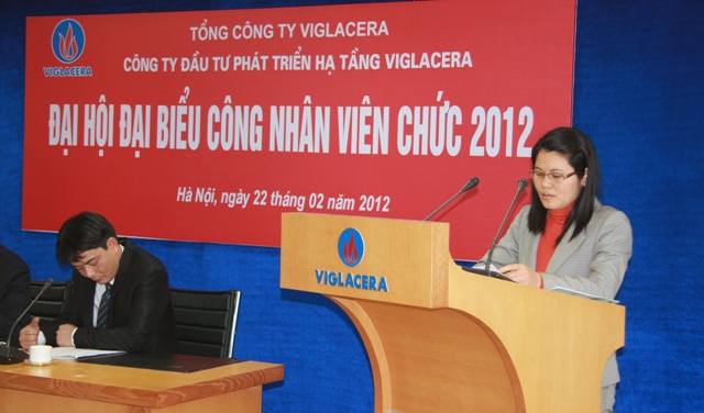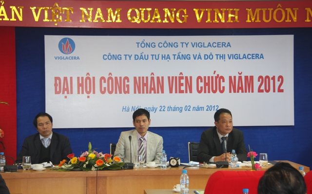 Thực hiện công văn số 14/CĐ-VP của Tổng công ty - Công đoàn Tổng công ty ngày 01/02/2012 về việc tổ chức Đại hội công nhân viên chức, Hội nghị người lao động năm 2012. Trong hai buổi sáng và chiều ngày 22/02/2012, Công ty ĐTPT Hạ tầng Viglacera và Công ty ĐTHT và Đô Thị Viglacera đã tiến hành tổ chức Đại hội Đại biểu công nhân viên chức năm 2012. Đại hội được vinh dự đón Ông Luyện Công Minh, Chủ tịch HHĐTVông Nguyễn Anh Tuấn – Tổng giám đốc TCT, , ông Nguyễn Quý Tuấn – Chủ tịch Công đoàn TCT, lãnh đạo TCT và Ban bất động sản cùng đến dự.