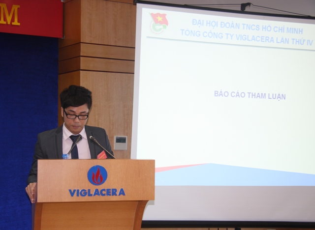 Đồng chí Nguyễn Quốc Huy, Bí thư Đoàn Tổng công ty Viglacera khóa III trình bày Báo cáo tổng kết công tác Đoàn khóa III và Phương hướng, nhiệm vụ khóa IV
