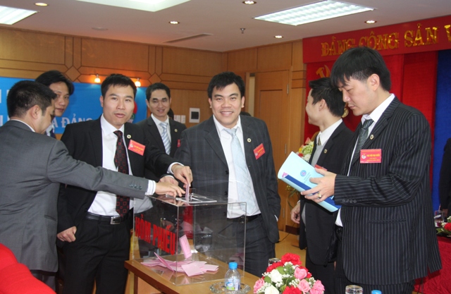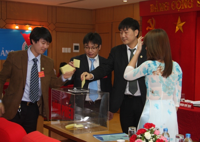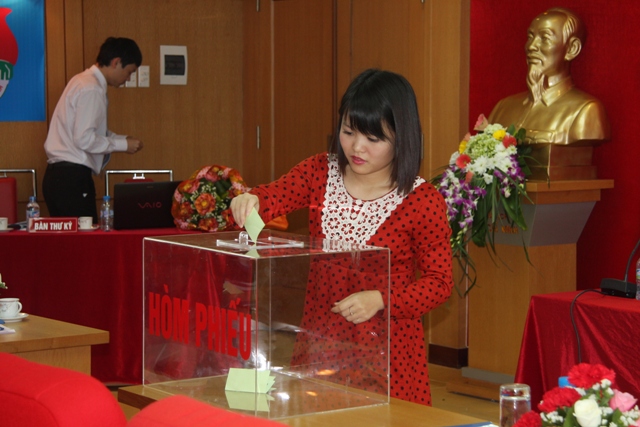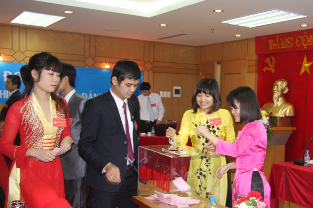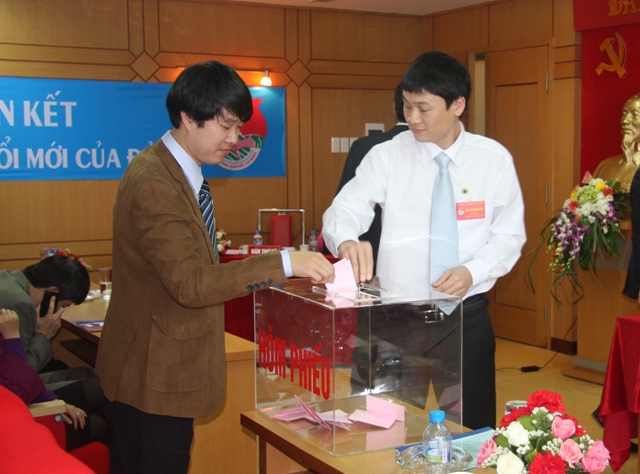 Các đại biểu bỏ phiếu bầu Ban chấp hành, Bí thư Đoàn khóa IV và bầu đại biểu đi dự Đại hội Đoàn Quận Cầu Giấy